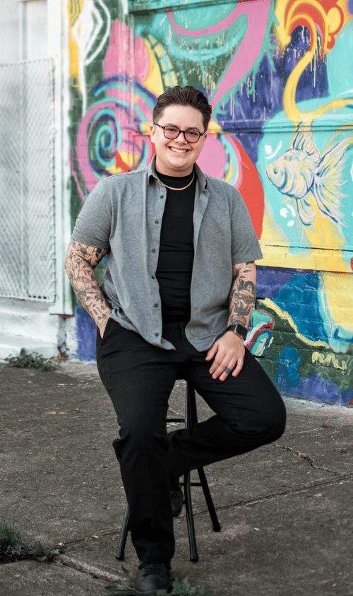 Lee Tepper, LISW-S is a licensed therapist, educator, and content creator (@enby_therapist) whose work centers queer and trans mental health, affirming care, and offering language for surviving hard things with more clarity, self-compassion, and honesty. Lee currently serves as Kaleidoscope Youth Center's Board Chair.