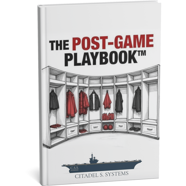 A $27 Post-Game Playbook™ for Athletes navigating transition from the locker room to the office. The scoreboard is gone, but the game isn't over.