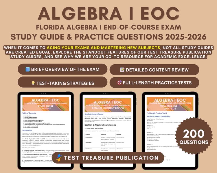 Florida Algebra I EOC Success Strategies Study Guide 2025-2026