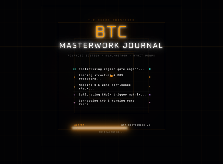 The result is a decision engine, not a strategy, not a course — that runs every variable of a BTC or ETH perpetuals trade through a defined, sequential gate system before execution.