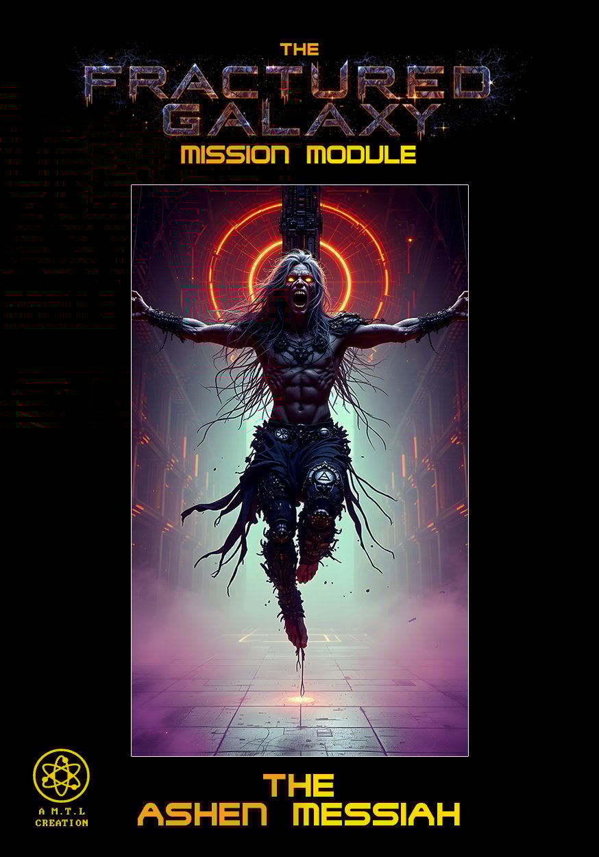 Now Available: The Ashen Messiah is the first Mission Module released for The Fractured Galaxy. The Fractured Galaxy is a Dystopian Sci-Fi / Horror TTRPG using the VOIDCORVUS (Void System) Created by Martin Tobias Lithner. Galaxy