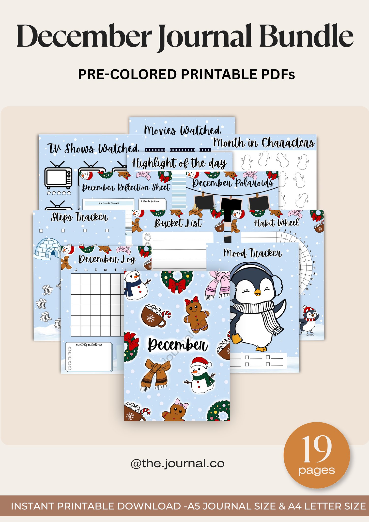 Pre-colored December Bullet Journal Bundle (Cozy Winter ) - A4 Letter Size & A5 Journal Size