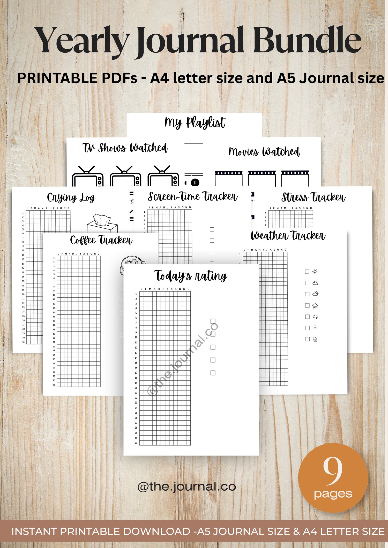 Basic Yearly Journal Bundle (9 Pages) - Printable A4 letter size & A5 Journal size pages
