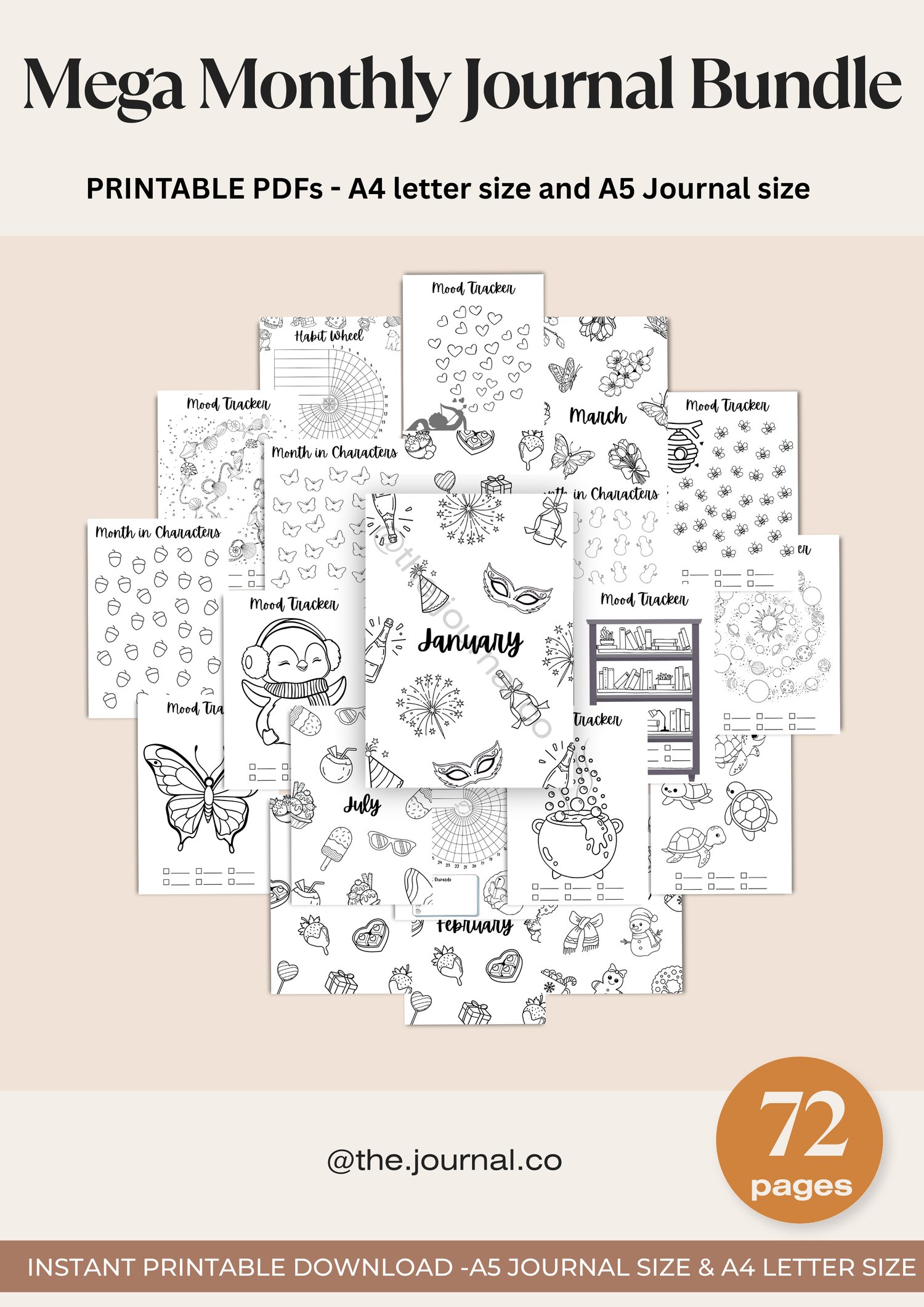 Monthly Mega Journal Bundle 72 Pages - Printable PDF(s)