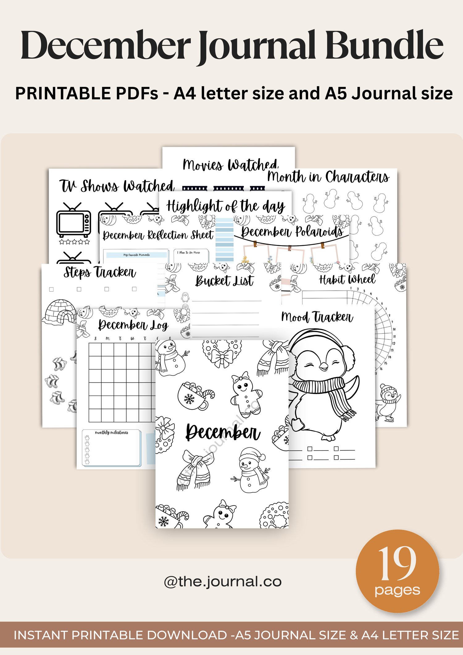 December Bullet Journal Bundle (Cozy Winter) - A4 Letter Size & A5 Journal Size