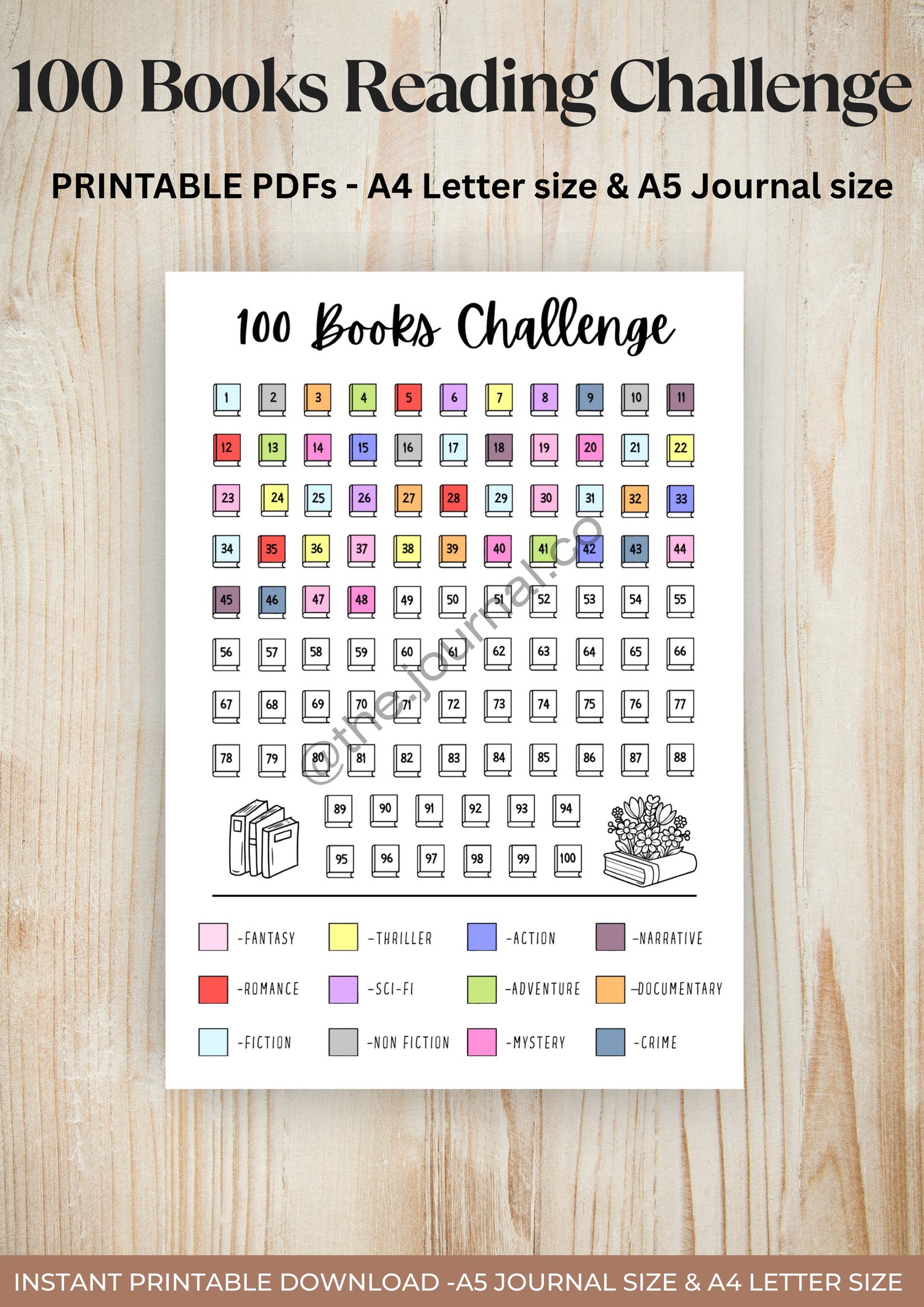 100 Books Reading Challenge - A4 Letter Size & A5 Journal Size