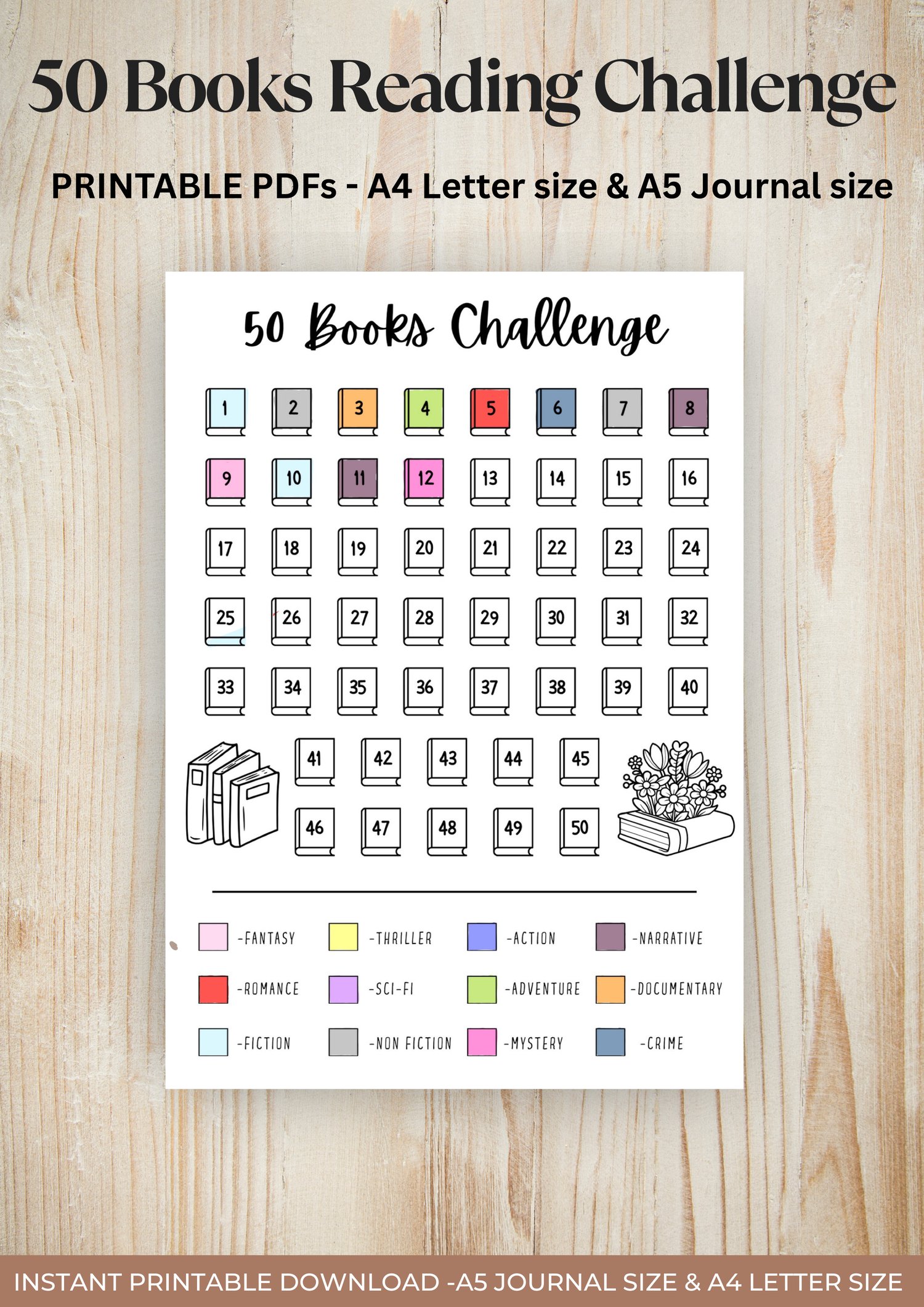 50 Books Reading Challenge - A4 Letter Size & A5 Journal Size