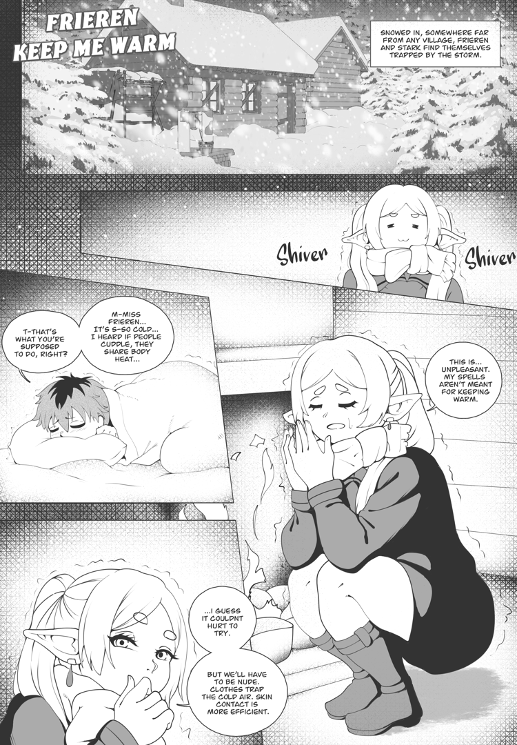 Snowed in together, Frieren tries to keep Stark warm with magic, only for it to get out of hand. As her spell makes her grow heavier and hotter, the awkward intimacy of keeping Stark warm reveals certain interests and erotic actions between the two. How will they survive the cold together? Find out February 20th!