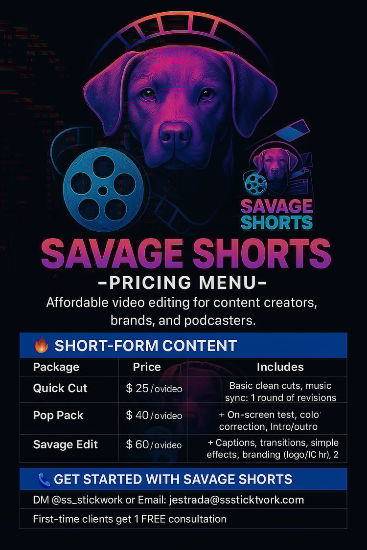 We turn raw footage into scroll-stopping content for Reels, TikTok, and YouTube Shorts. Need to level up your skills? Our courses teach you how to edit, grow your brand, and monetize your content like a pro.
