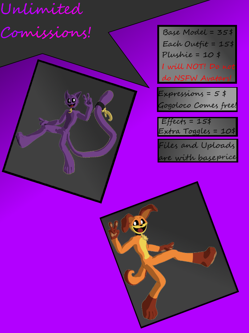 Hi, Im Unlimited I make Vrchat Avatars of Spider-Man, Hazbin Hotel, MHA, and Poppy Playtime.