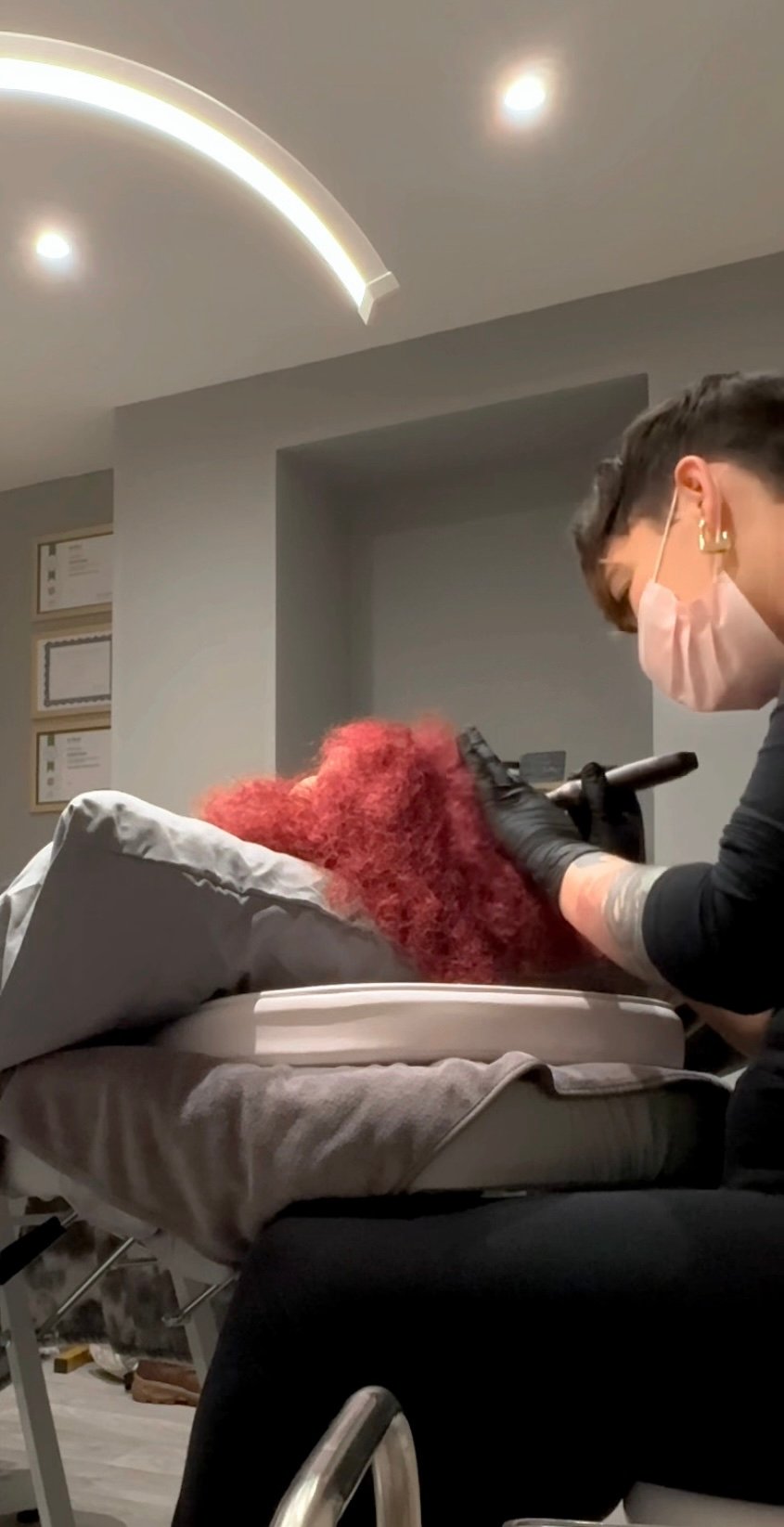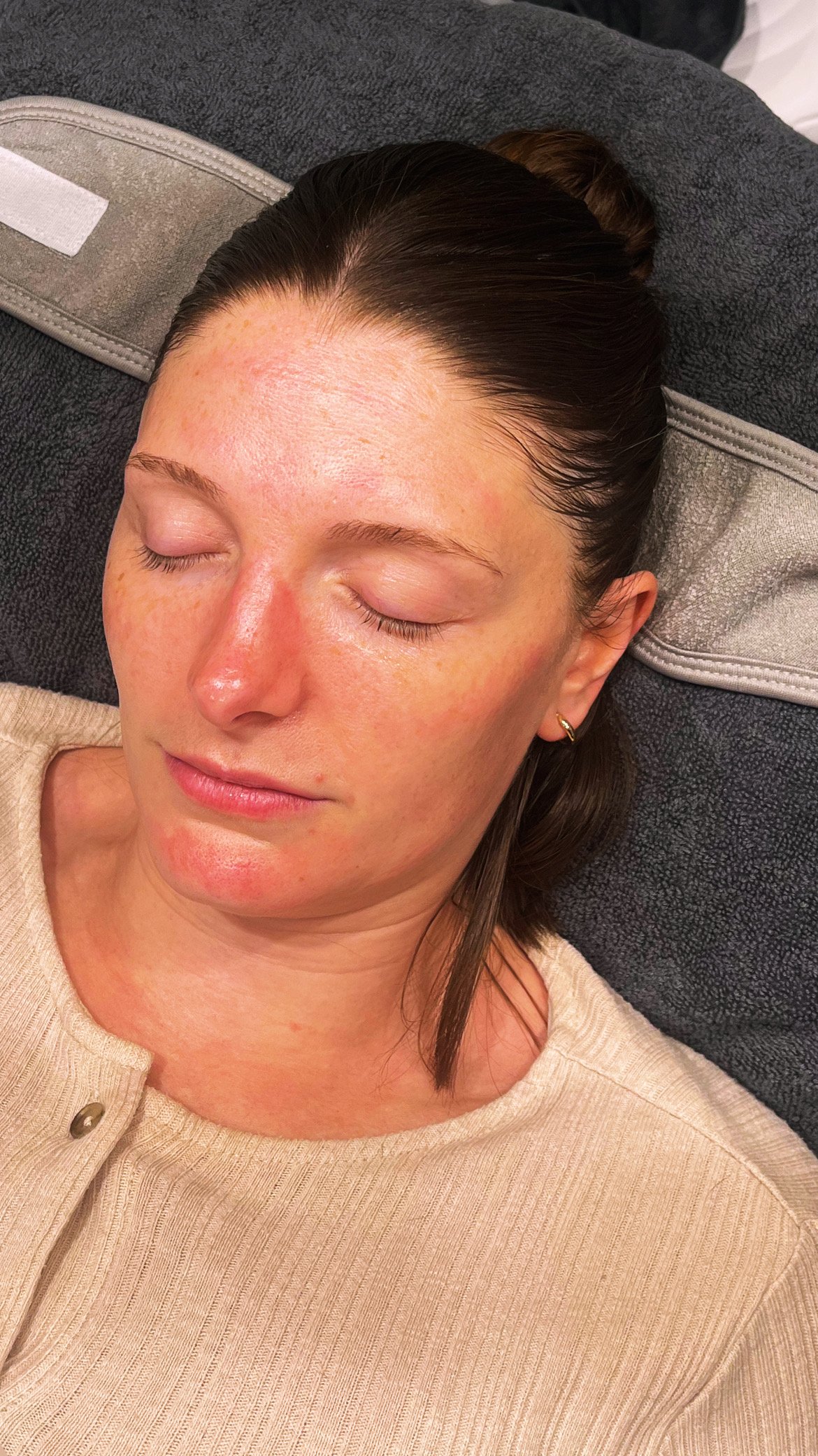 The full luxury experience: cleanse, tone, hot steam, extractions, enzyme peel, dermaplaning, Microneedling, LED Light Therapy, mask, ice globes & moisturise.