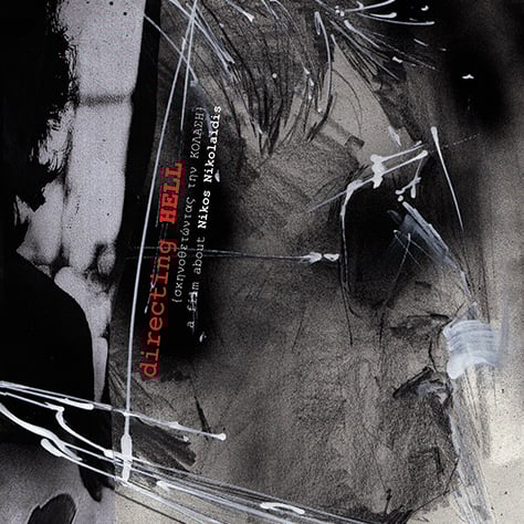 DVD cover for Christos Chouliaras documentary about Nikos Nikolaidis titled Directing HELL. Pencils, graphite, spray paint, acrylics and collage.