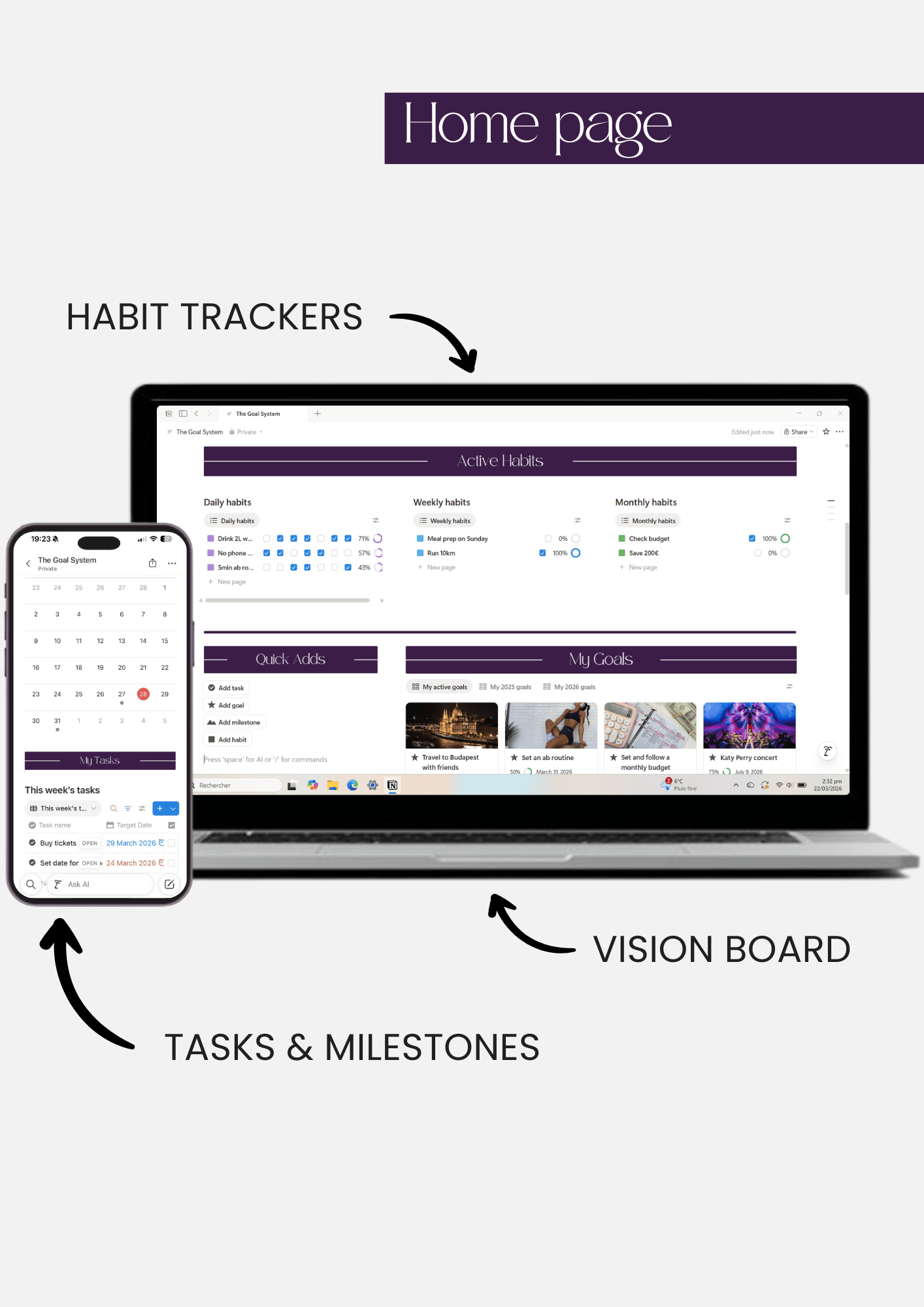 Designed to evolve with you, this action-focused Notion system will give you the clarity and structure you need to stay consistent — without feeling overwhelmed.