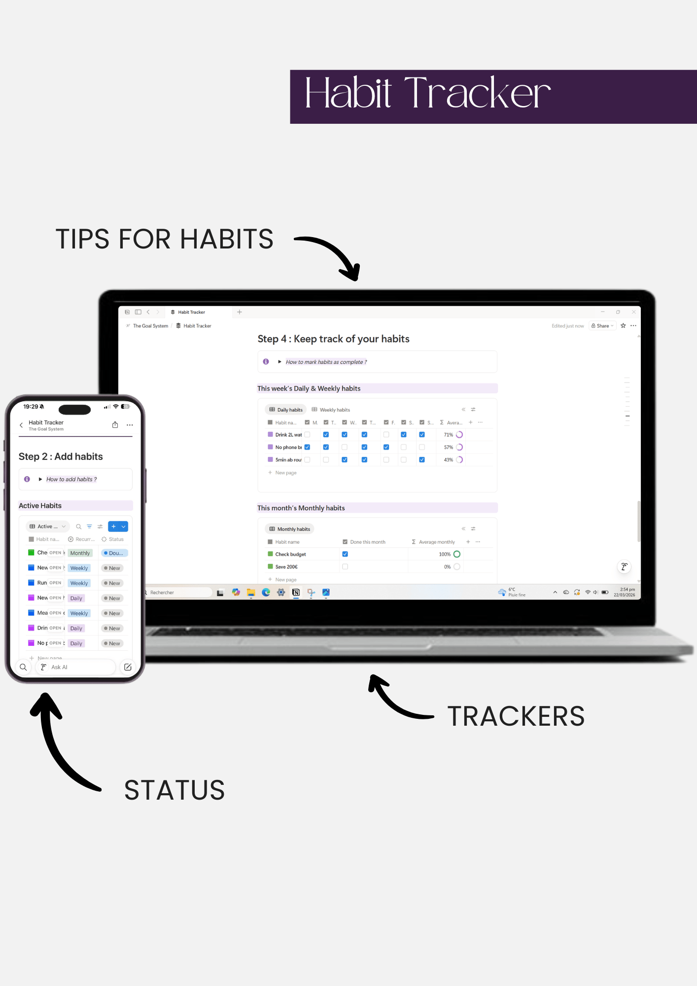 All the steps, tips, and science-backed methods you need to successfully reach your goals -- all in one single Notion system.