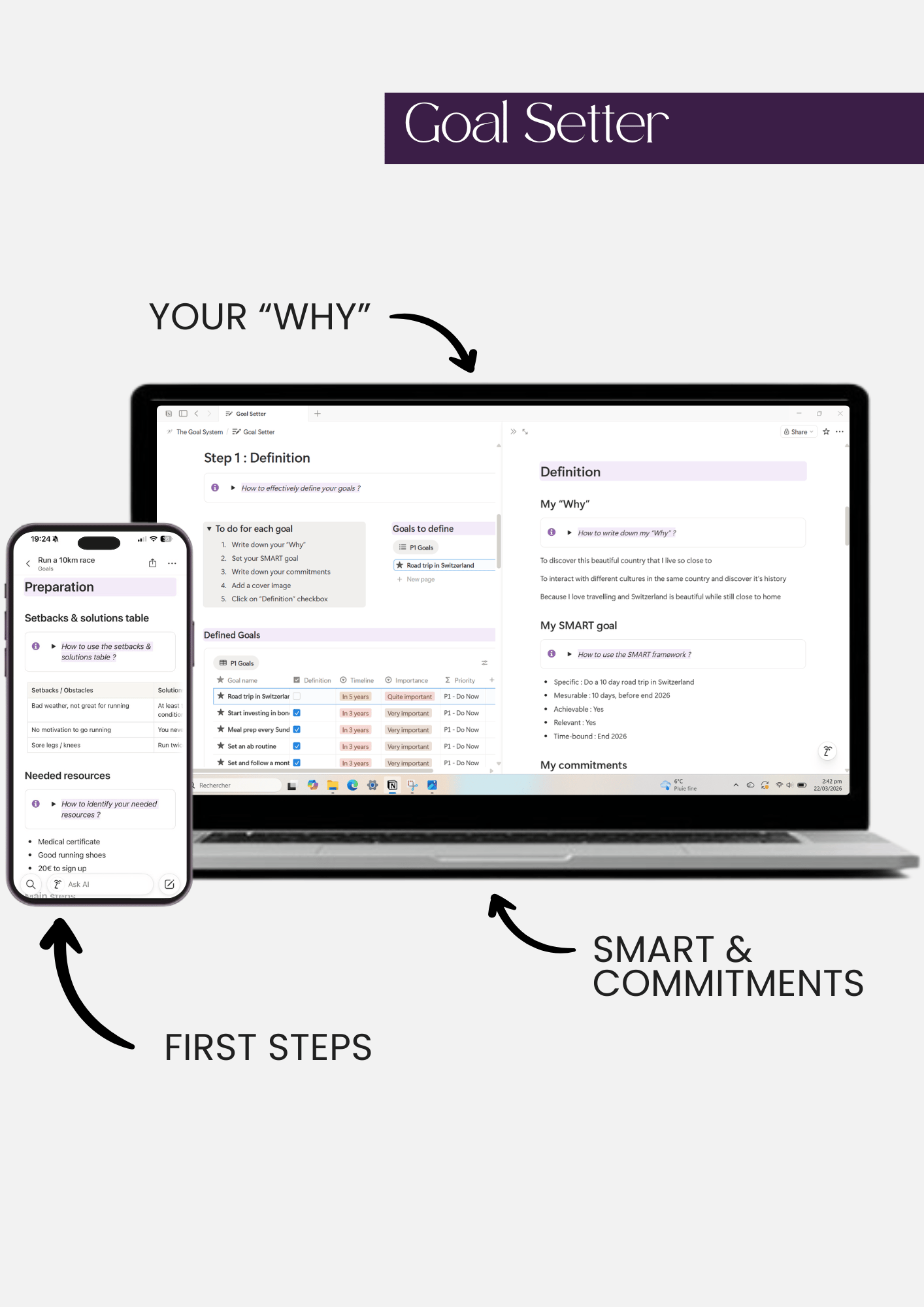 Whether you’re starting fresh or resetting your goals, it will fully guide you from vision → planning → execution, so you always know what to focus on and never just abandon your goals.