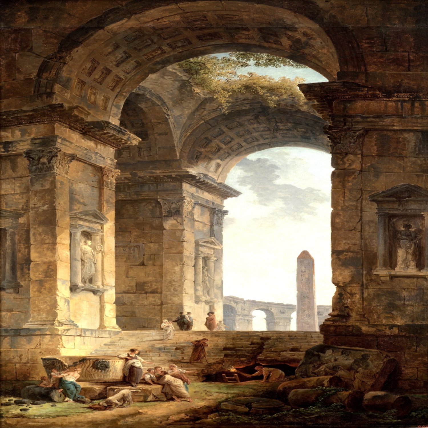 'Ruins with an obelisk in the distance'
