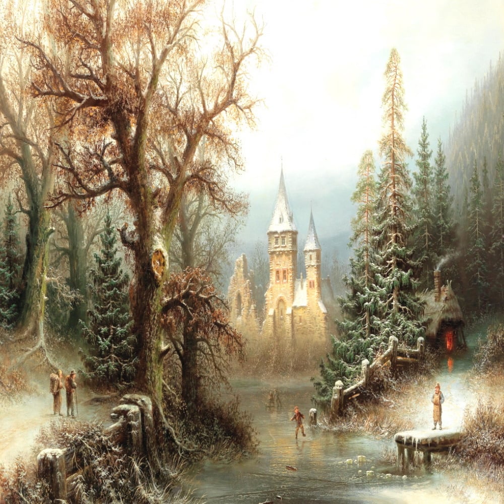 'Romantic winter landscape with ice skaters'