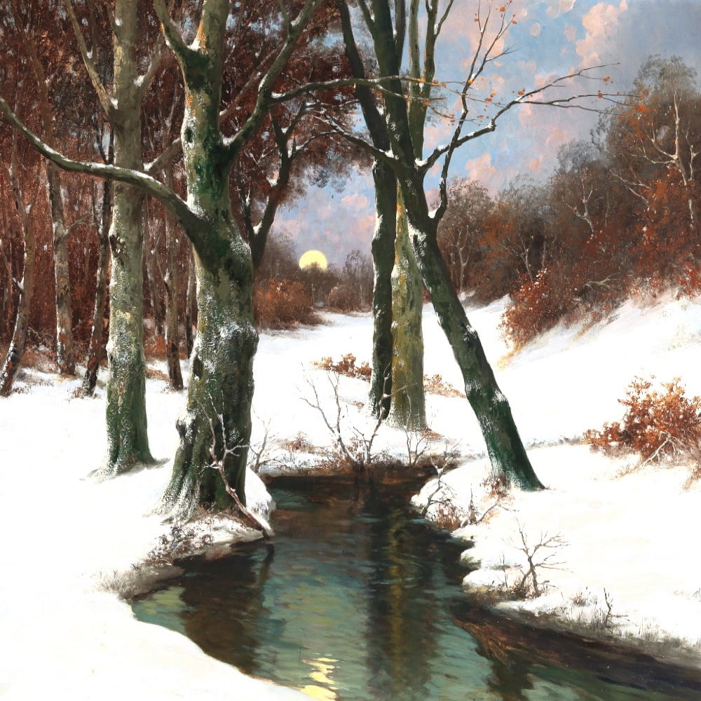 'Winter landscape with rising moon'