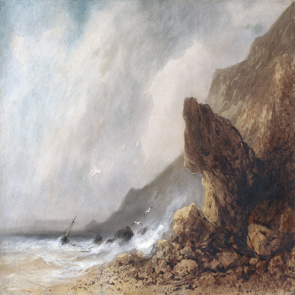 'Stormy seas by a chalky coast'