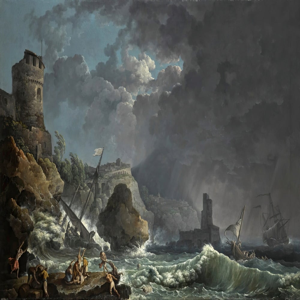 'A storm on a mediterranean coast'