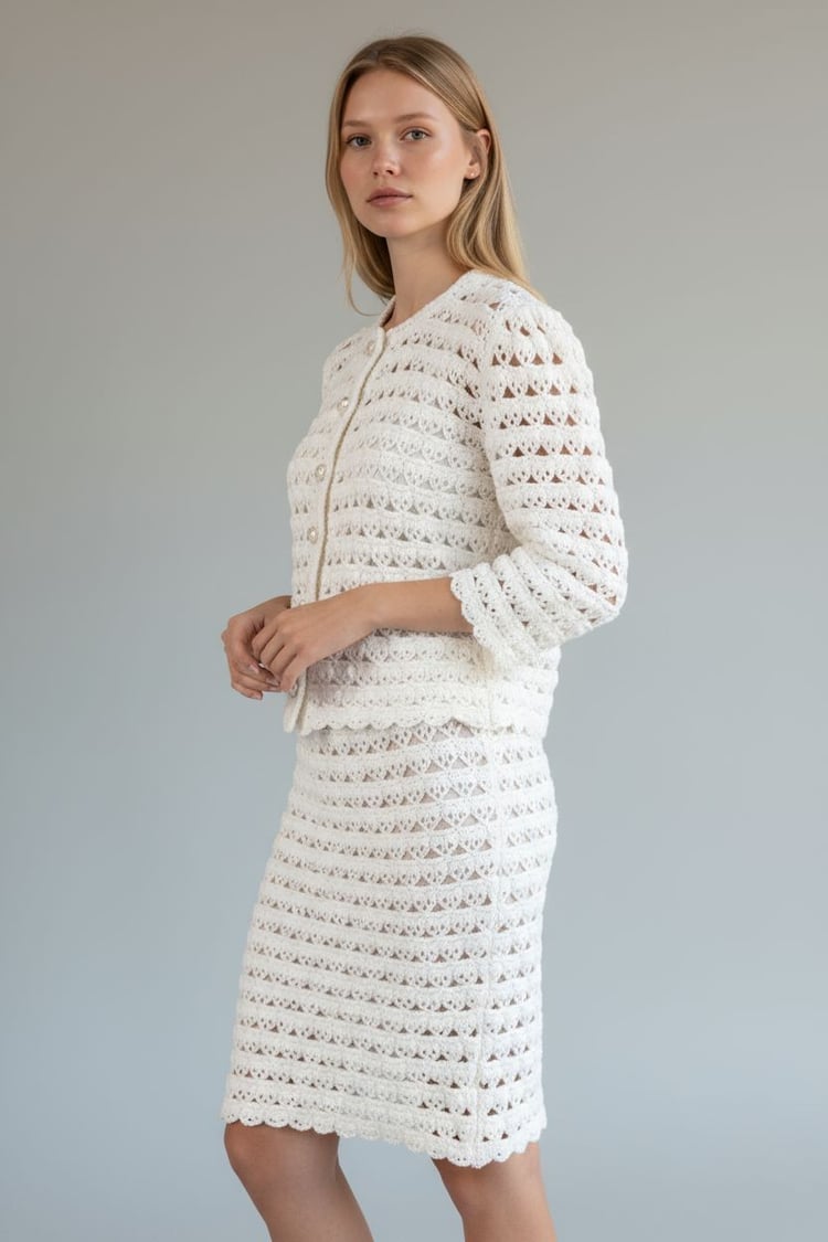 Handmade crochet and knitwear — sweaters, cardigans, dresses, tops, pants, bags, and more, each crafted with care and attention to detail.
