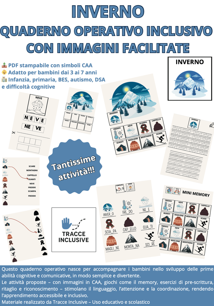 📥 I materiali che trovi qui sono frutto di passione, studio e lavoro sul campo: includono immagini facilitate, simboli CAA, esercizi visivi, giochi didattici e attività strutturate.
