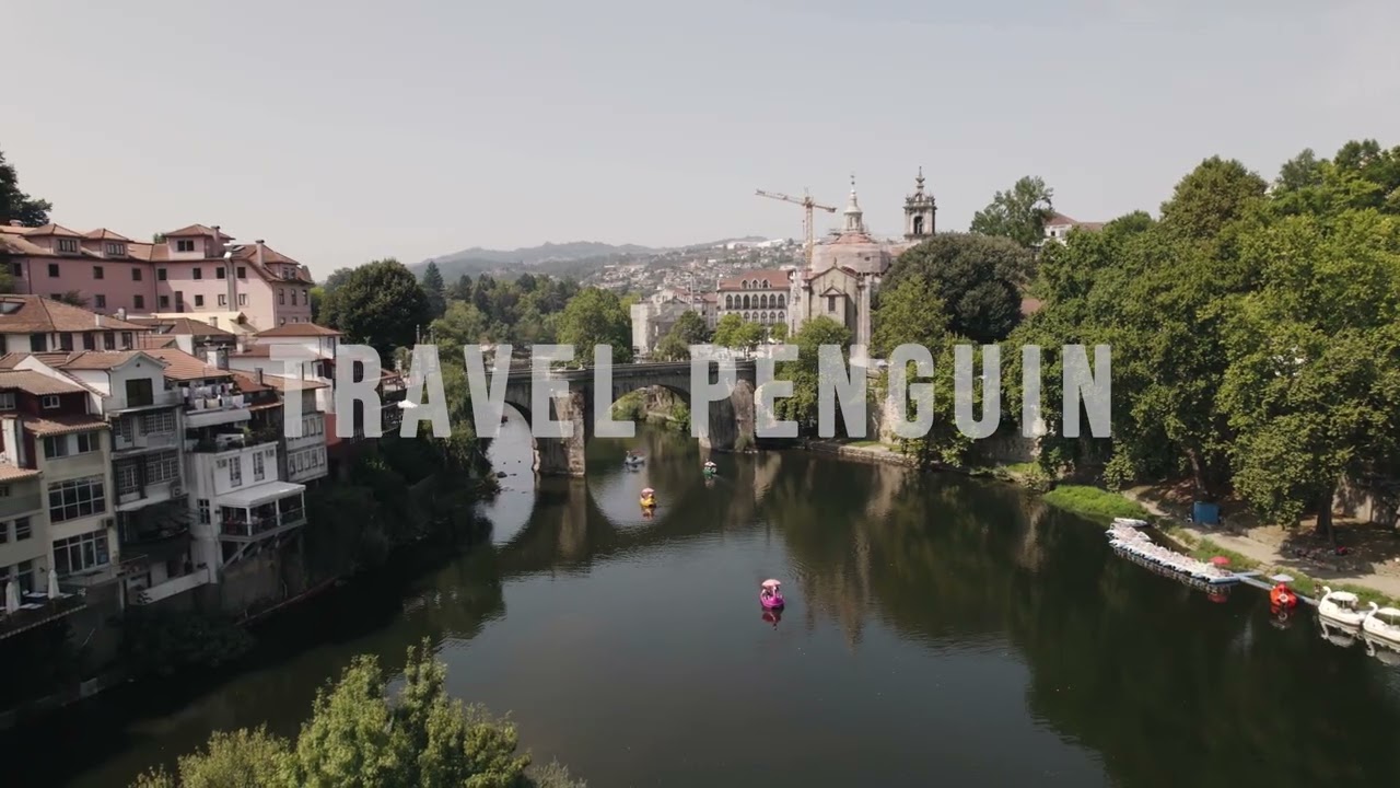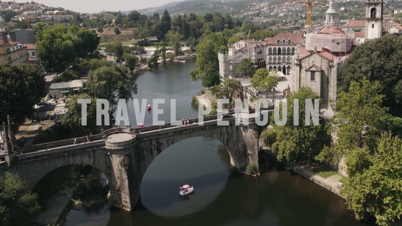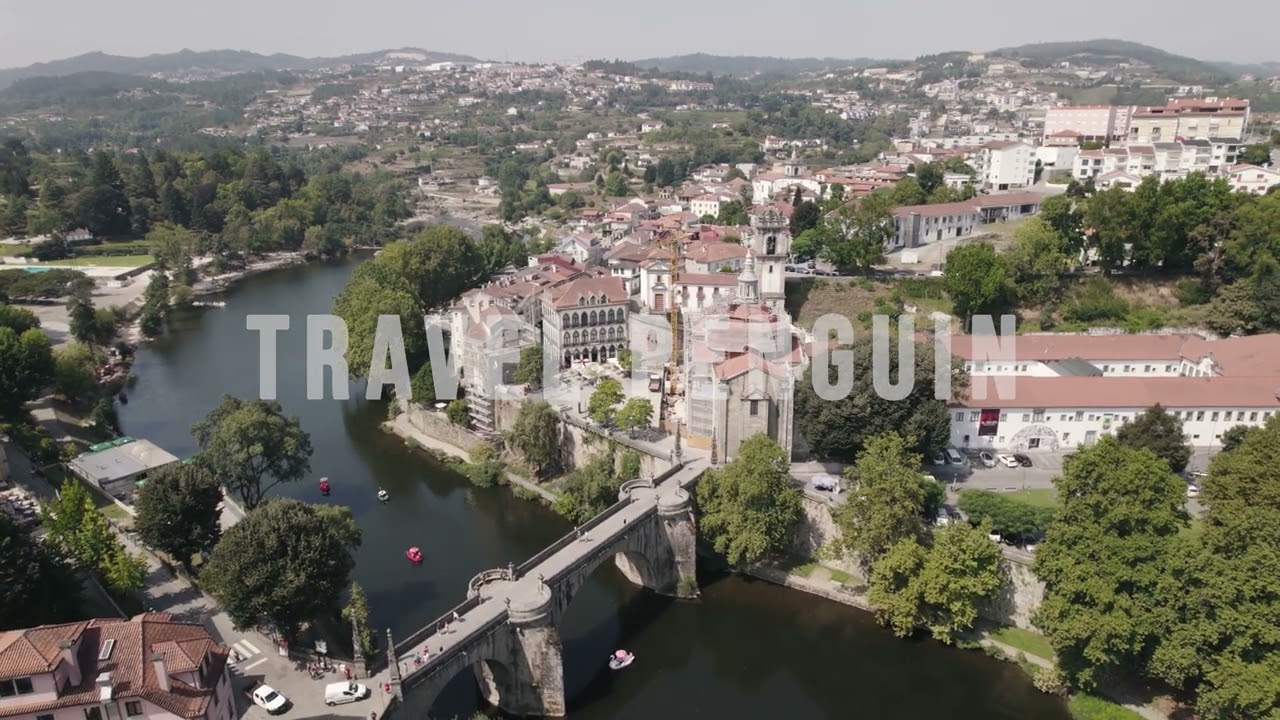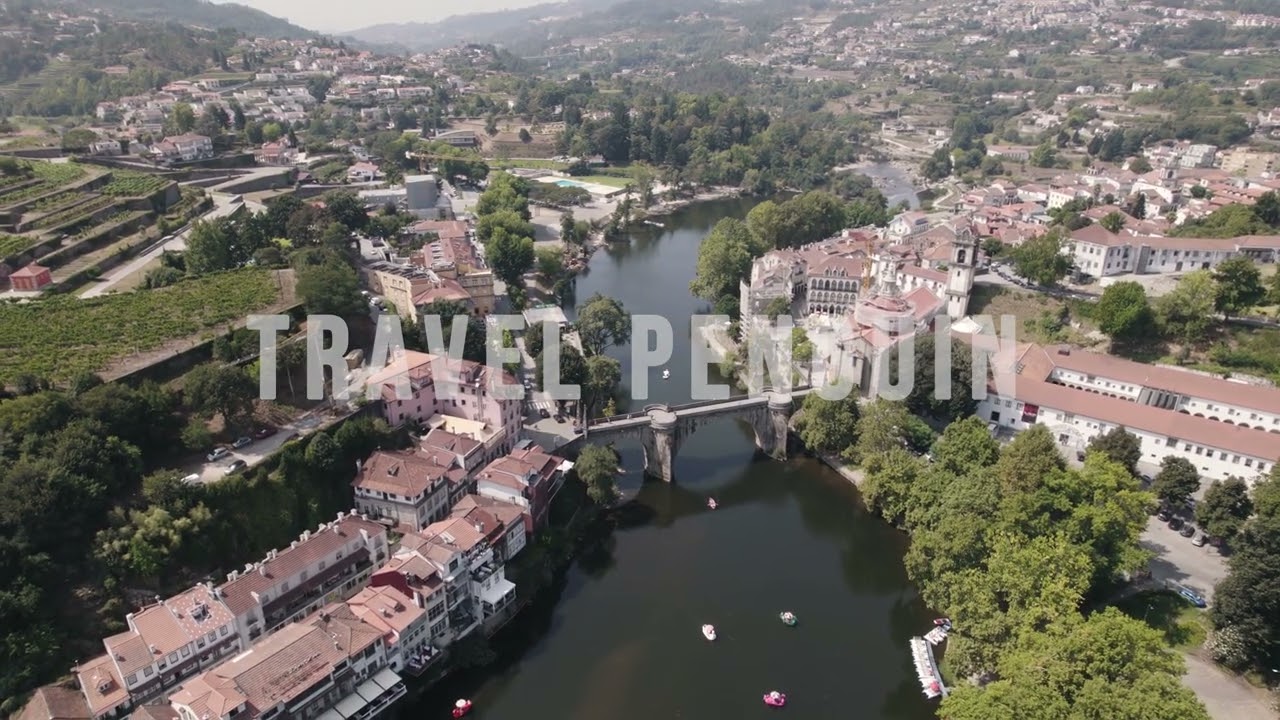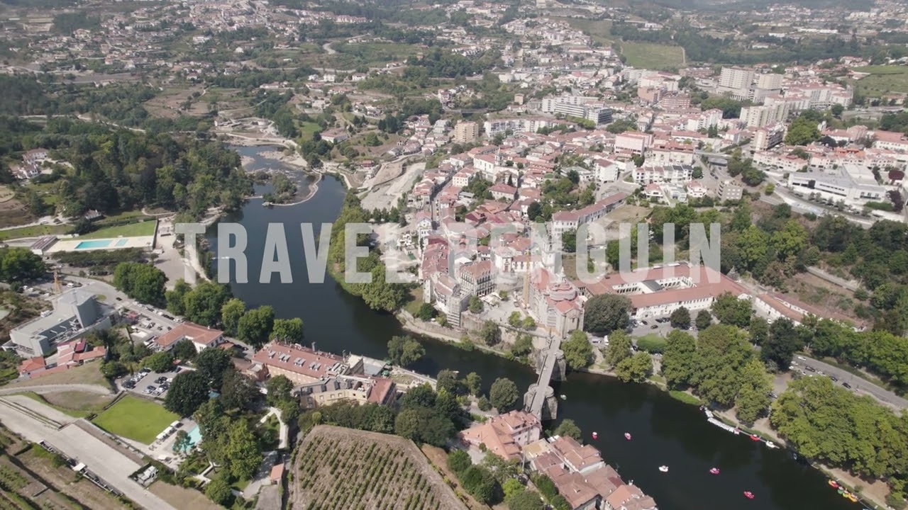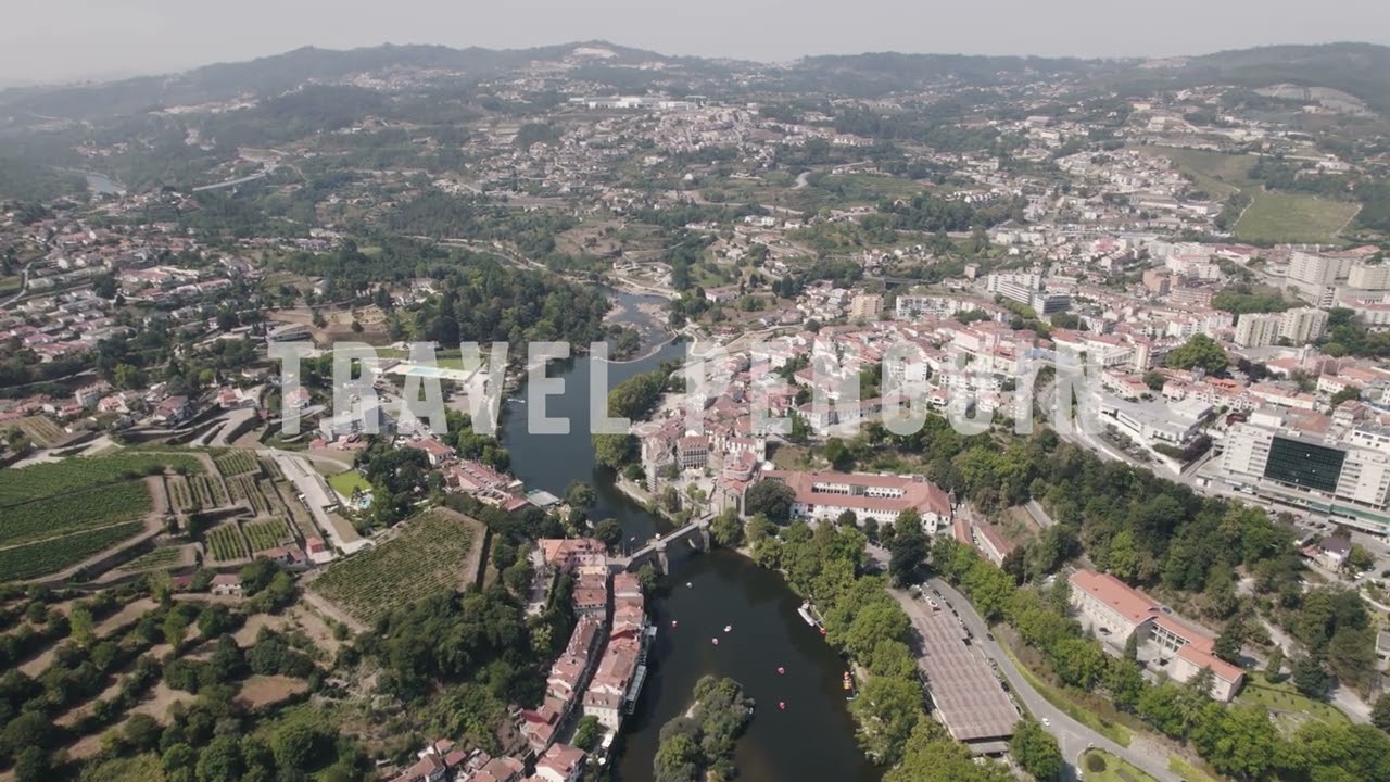 Professional 4K aerial drone footage of Amarante, Portugal. Cinematic views of historic landmarks, riverside architecture, bridges, and panoramic cityscapes available for commercial licensing and instant download.