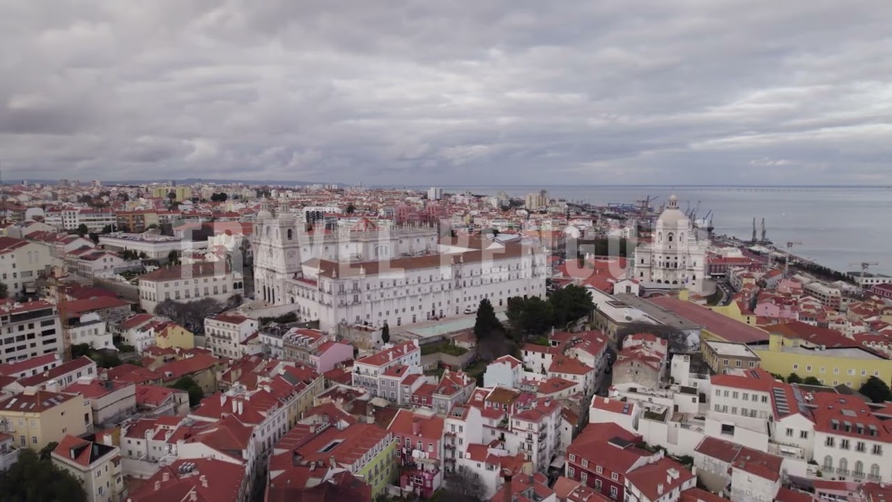 Professional 4K aerial drone footage of Lisbon, Portugal. Cinematic views of the historic city center, iconic landmarks, riverside scenery, and panoramic cityscapes available for digital download and creative use.