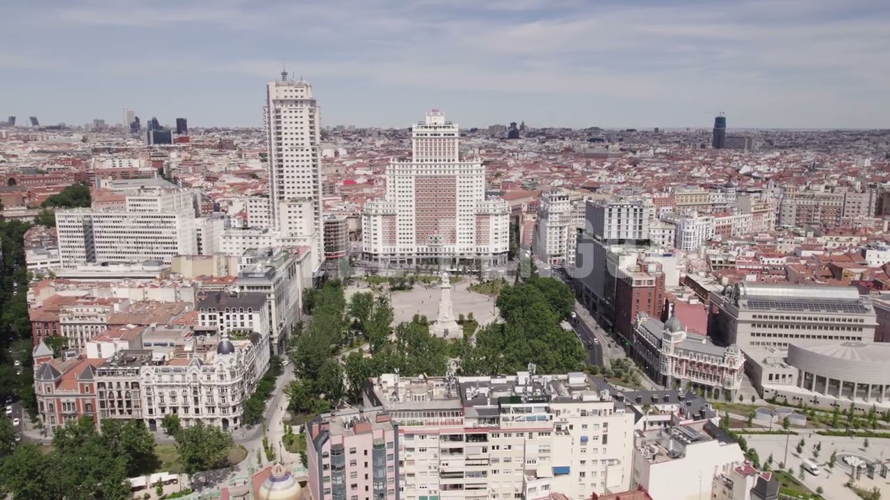 Professional 4K aerial drone footage of Madrid, Spain. Cinematic skyline views, historic landmarks, and panoramic cityscapes available for commercial licensing and instant download.