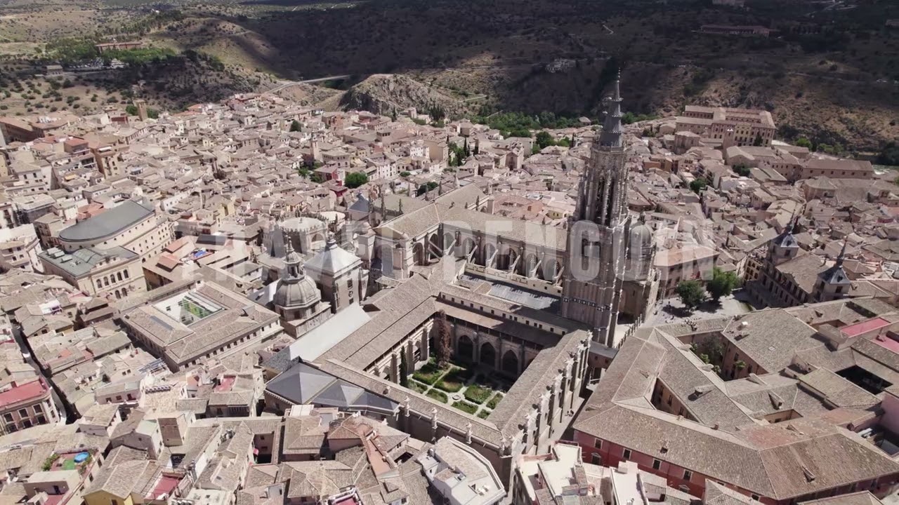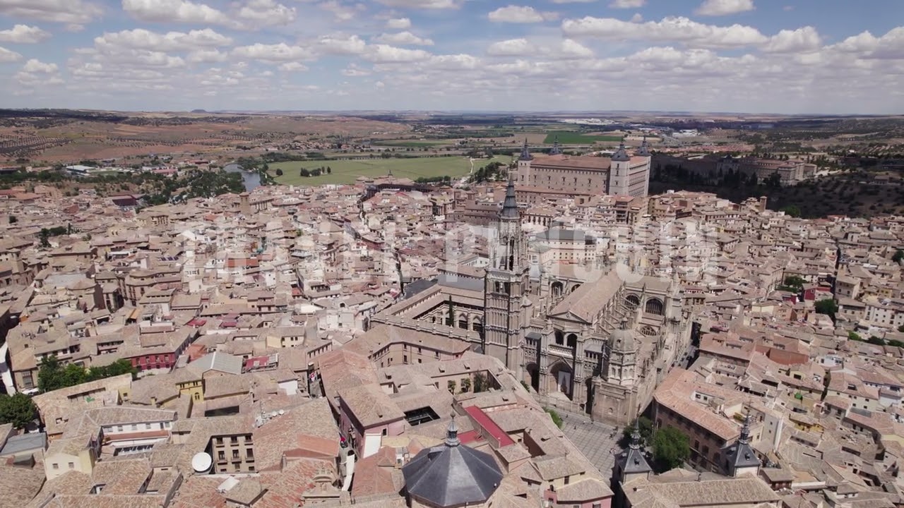 Professional 4K aerial drone footage of Toledo, Spain. Cinematic skyline views, historic landmarks, and panoramic cityscapes available for commercial licensing and instant download.