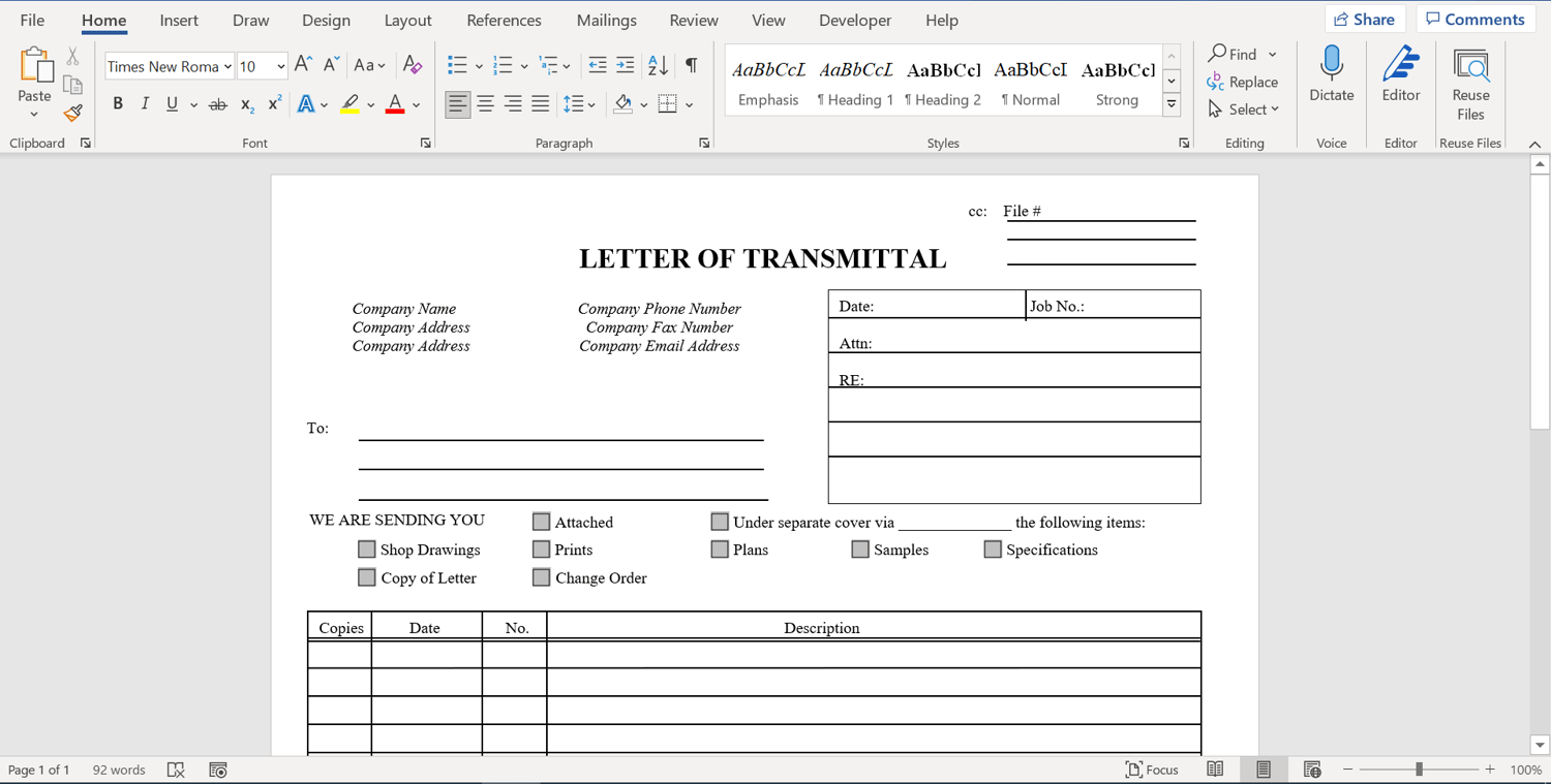 Letter of Transmittal Template (Word Template)