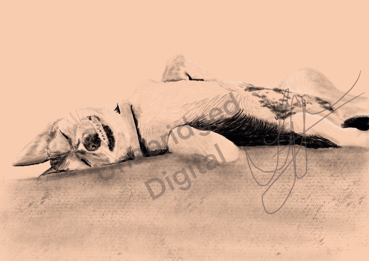 Handdrawn Charcoal Dog: “Belly Rubs Please”