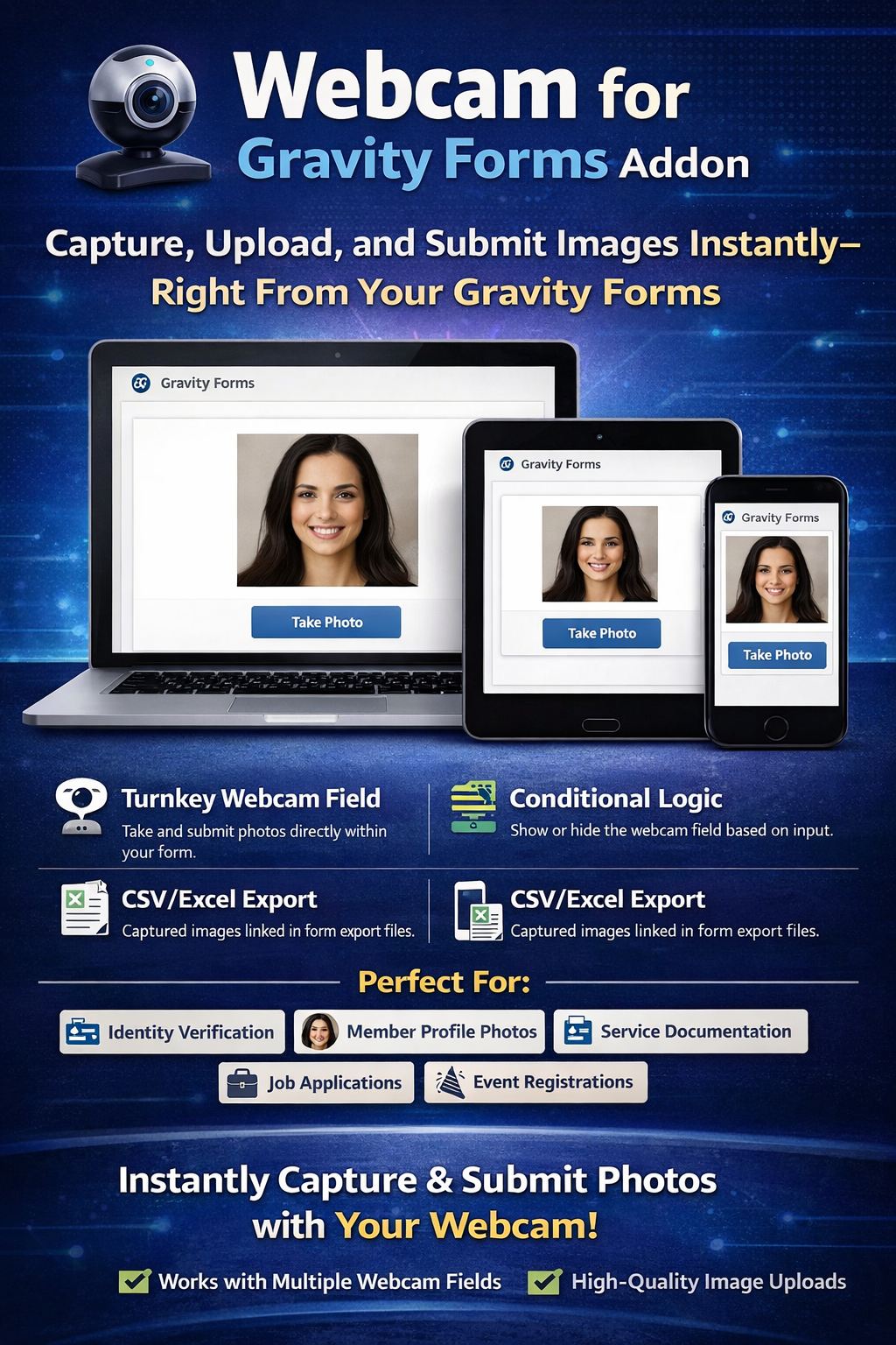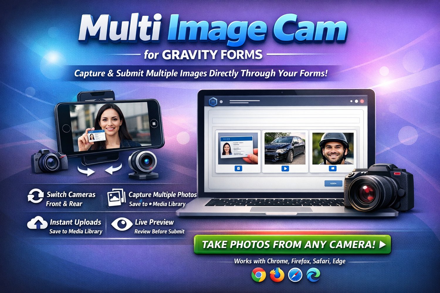 Capture and submit multiple images from any camera — directly through your Gravity Forms.