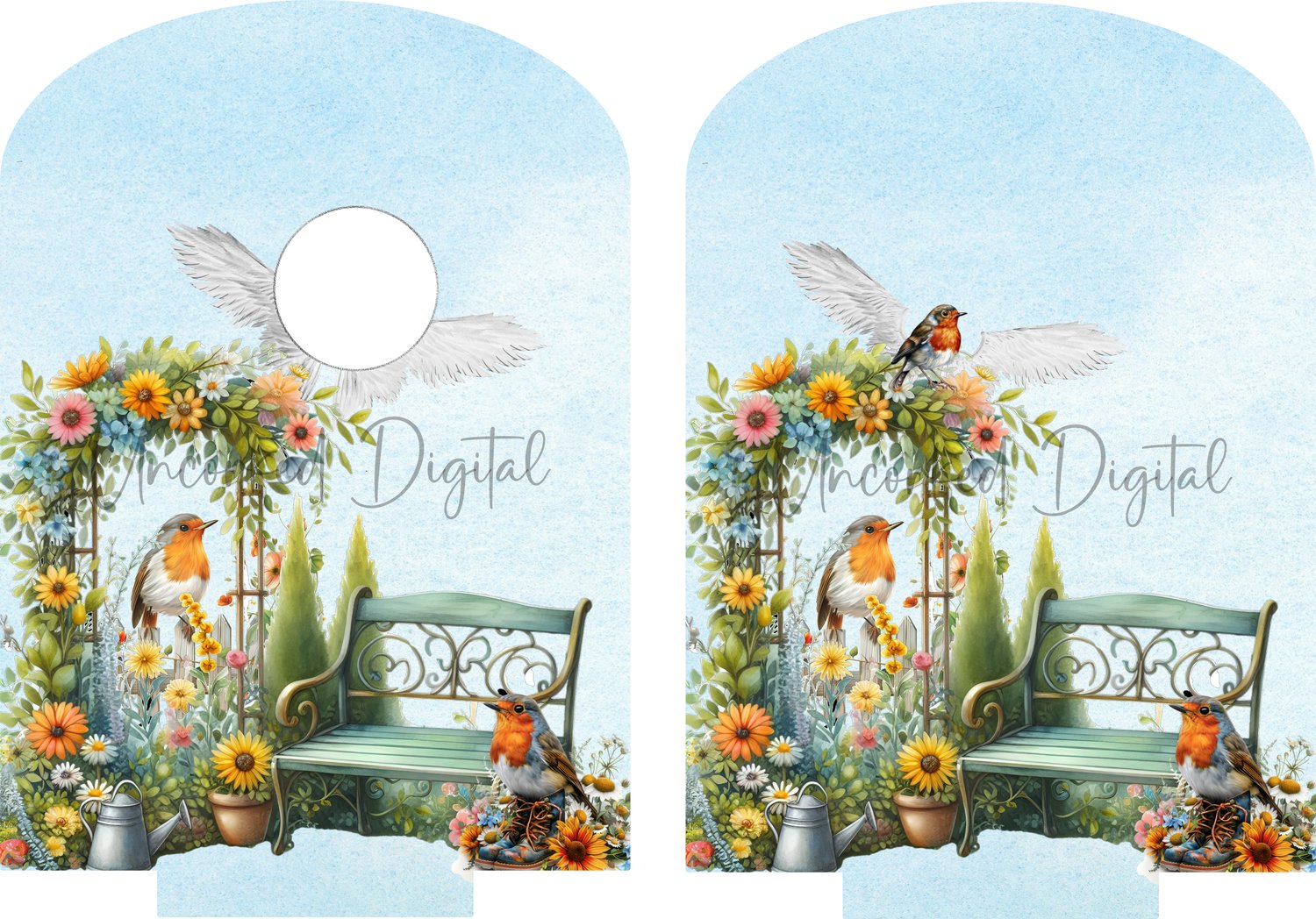 Solar acrylic boots and robin design with photo space x 2 (mackie direct)