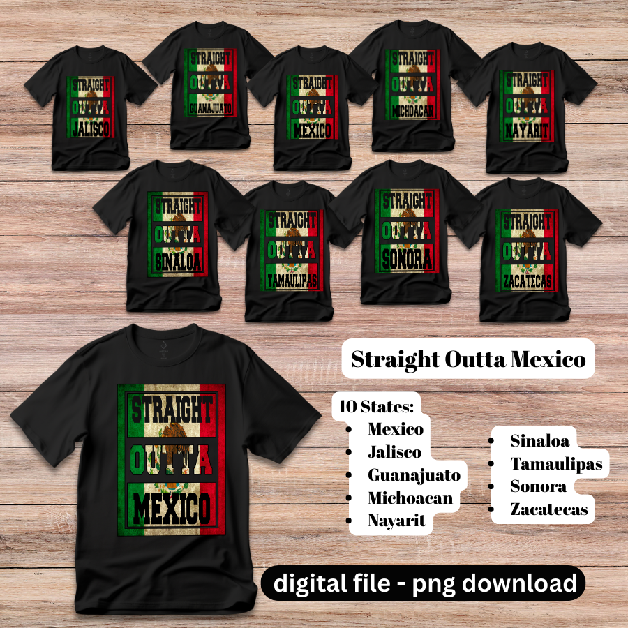 Straight Outta Mexico Bundle digital png file / 10 files Mexican Eagle design /Mexican Flag t-shirt portrait png design / DTF transfer file