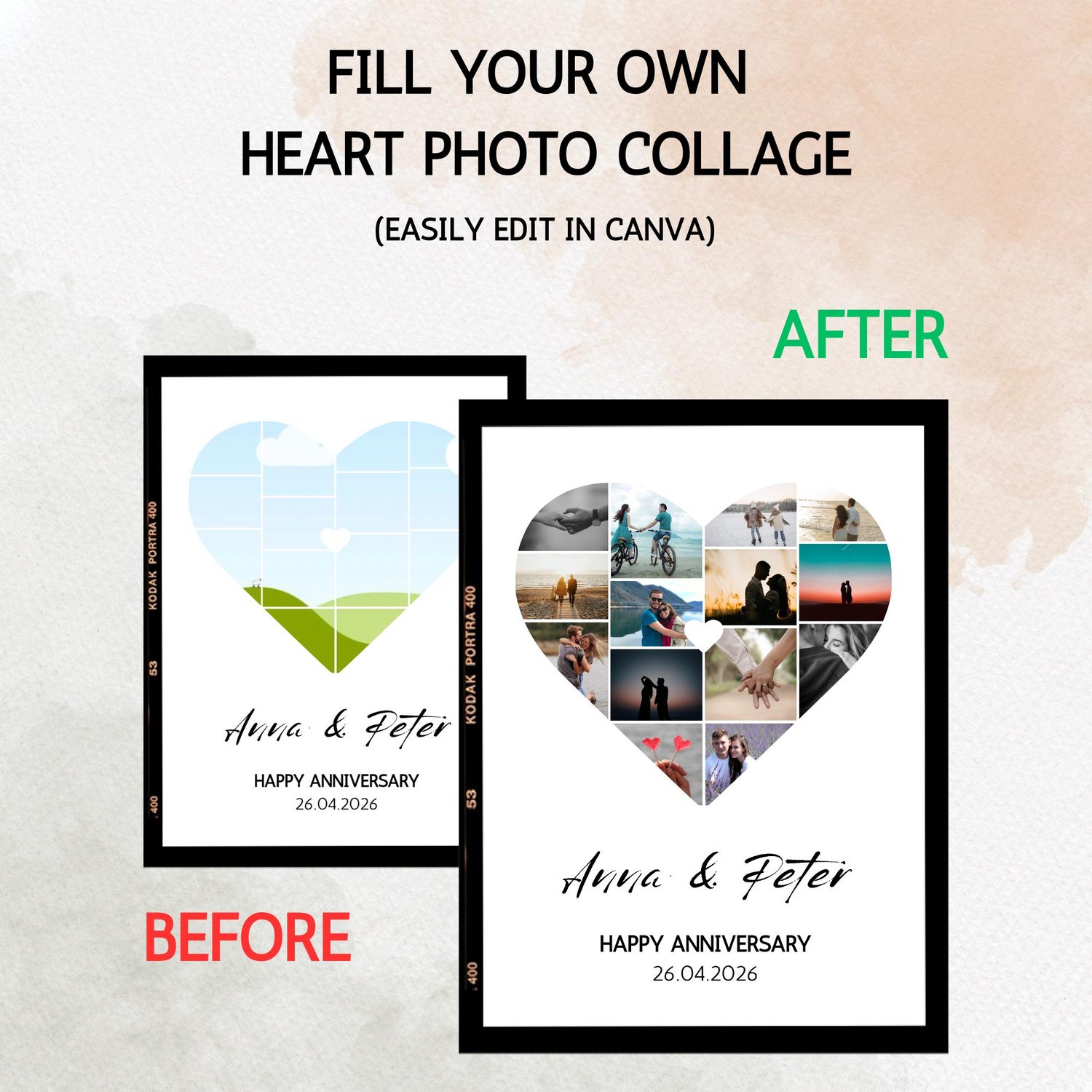 Anniversary Heart Photo Collage Custom Canva Frames Template
