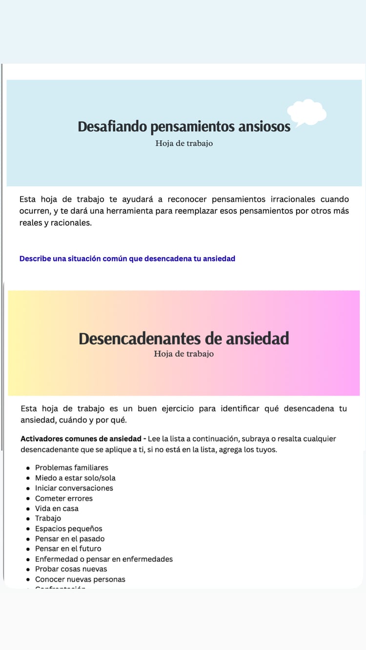 Aquí encontraras información, herramientas prácticas cuidadosamente creadas y seleccionadas para apoyarte en el camino hacia tu paz interior, empoderamiento, una vida llena de propósito, alegría, y abundancia. Explora nuestra variedad de recursos digitales, cursos en línea, y citas personalizadas de acompañamiento y terapia.