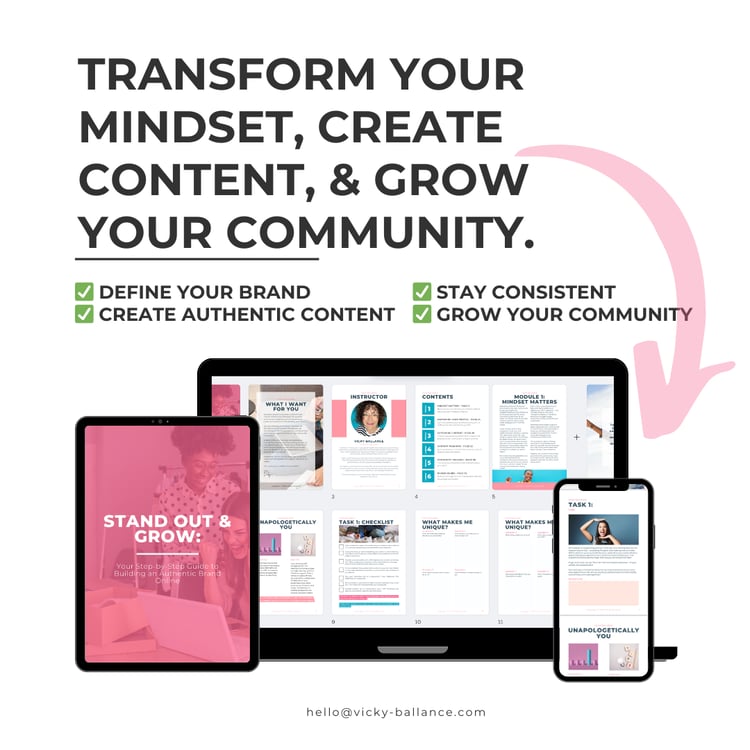 Hi, I’m Vicky, and I’m here to help busy, tired women step off the “struggle bus” and thrive - whether that’s in your personal life, your mindset, or your business.