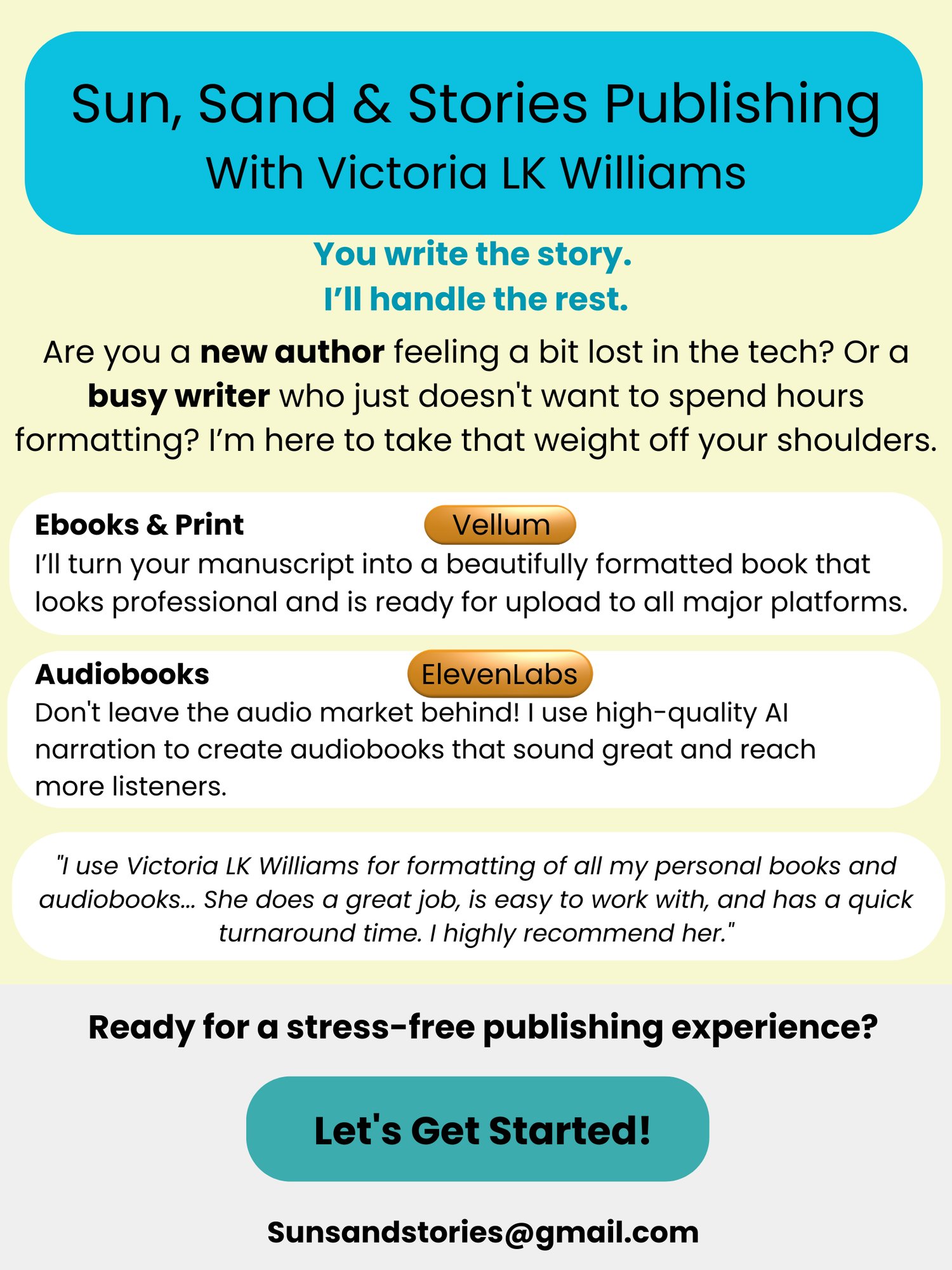 Publishing can be overwhelming, but it doesn't have to be. Authors and industry professionals choose Sun, Sand & Stories because we offer: