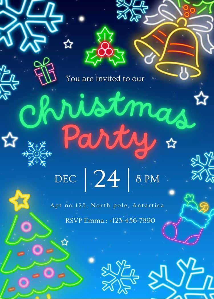 Christmas Greeting Neon Party (Printable)