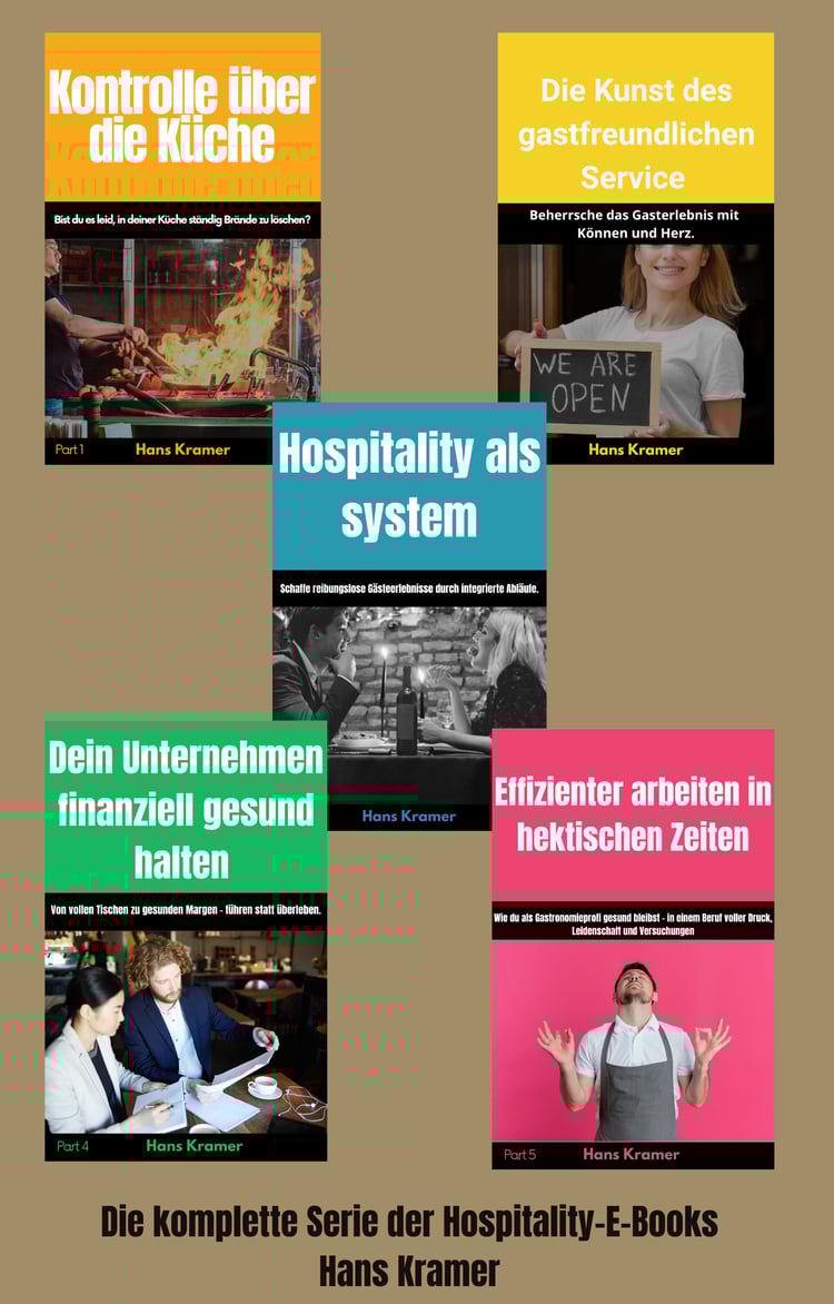 Five concise, powerful eBooks that capture the essence of hospitality – from kitchen to service, from leadership to self-care.