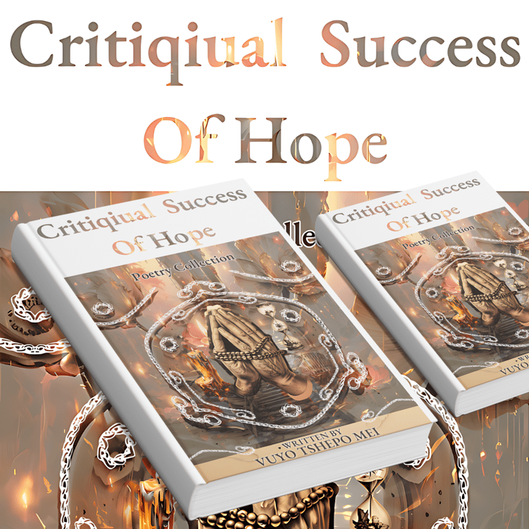 I’m Vuyo Tshepo Mei, a poet, writer, graphic designer, technical designer, artist, and the proud owner of TOO COO TATTOOS. My work is driven by a deep passion for exploring themes of hope, resilience, and the human experience. Through my poetry, I strive to capture the complexities of life, creating pieces that resonate with the emotions and struggles we all face. My collection, "Critiquial Success Of Hope," reflects my belief in the transformative power of words to inspire, heal, and provoke thought.