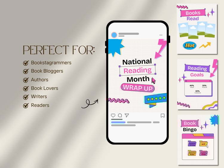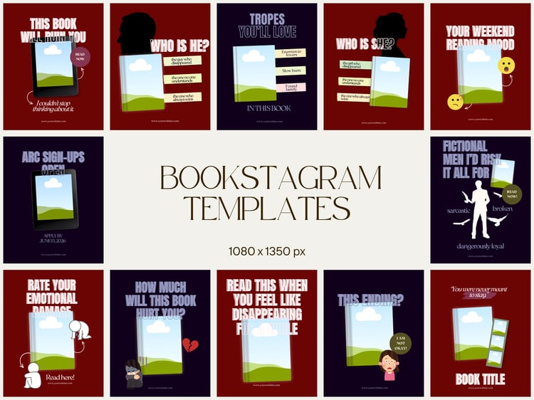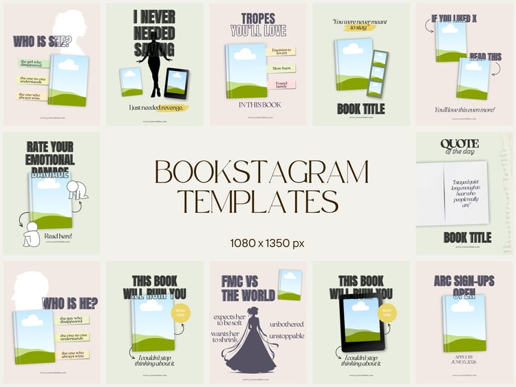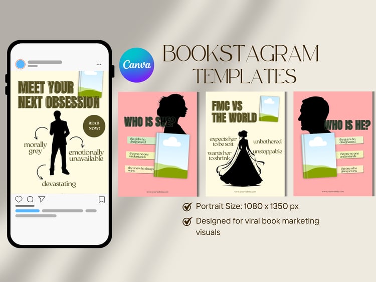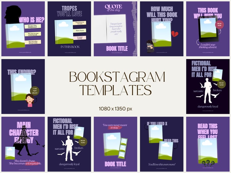 A curated set of Canva templates inspired by viral Bookstagram and reader trends—designed to help you start posting consistently and build a standout bookish brand from day one.
