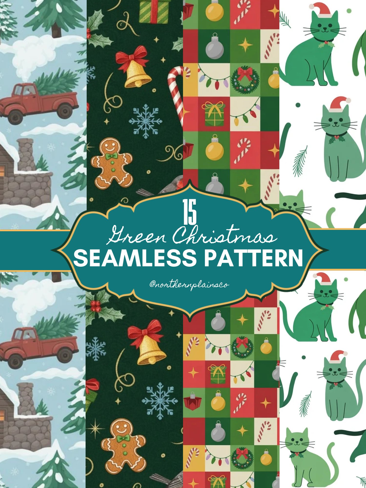 15 Green Christmas Seamless Patterns