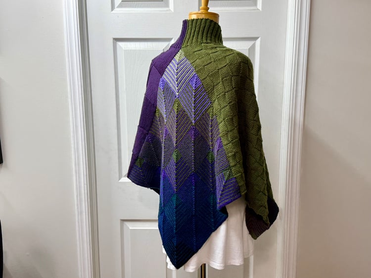 The Mitered Vee Capelet was Cynthia's August Finished Object and it took longer than she expected, so it became a two-month project for completion.