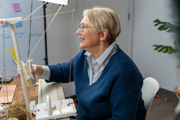 Barb has been immersed in machine knitting this fall as her classes for the School of Sweet Georgia (SOS) are being published. She has been deep in design, editing, and testing the patterns, workbooks and videos that students can access on SOS. (See the bottom of this blog post for a discount on your SOS subscription). Editing requires a clear mind, an eye for detail, patience and persistence. Between courses, Barb can be found a corner of her neighbourhood, installing yarn art!