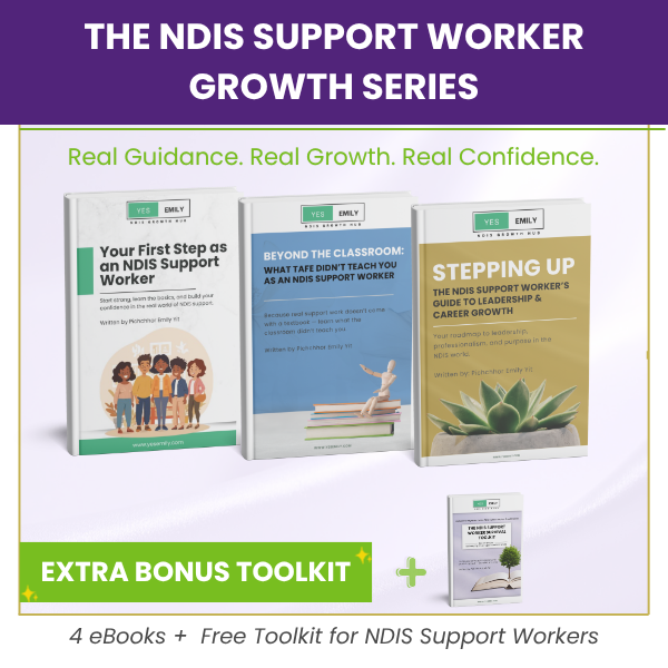 A practical 3-book bundle for support workers who want real-world skills, confidence, and momentum — not just theory.