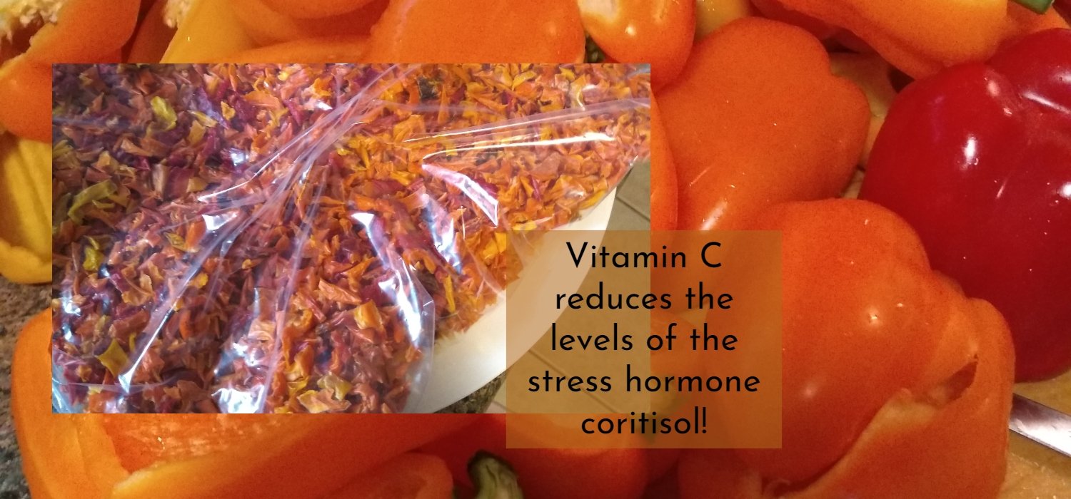 Look at all this Vit C... did you know a 1/2 cup red pepper contains 95 mg of this anti-stress nutrient? When faced with a stressful situation, your vitamin C stores are rapidly used up. Your adrenal glands "panic" when they don't have enough vitamin...