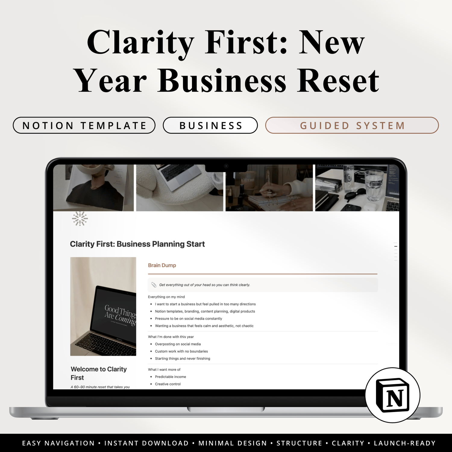 Get a free template to help you clear mental clutter, choose one business idea, and create a simple plan you can actually follow, plus exclusive Notion tips and early access to new templates.