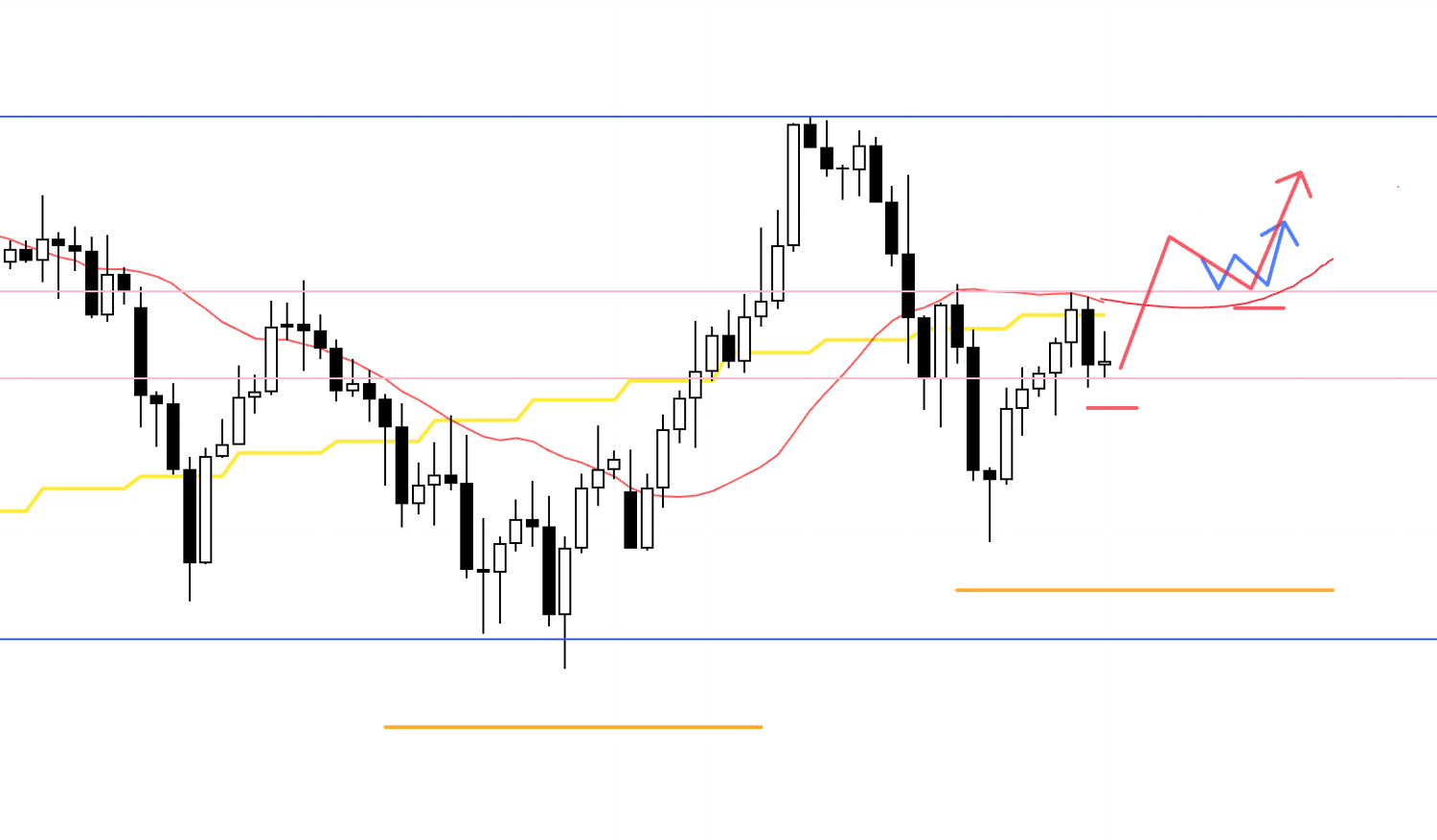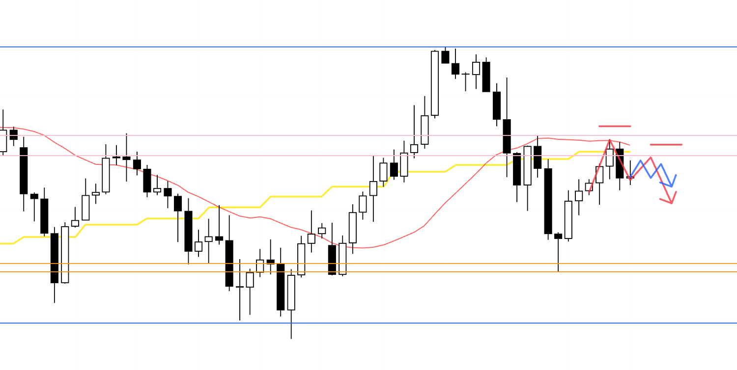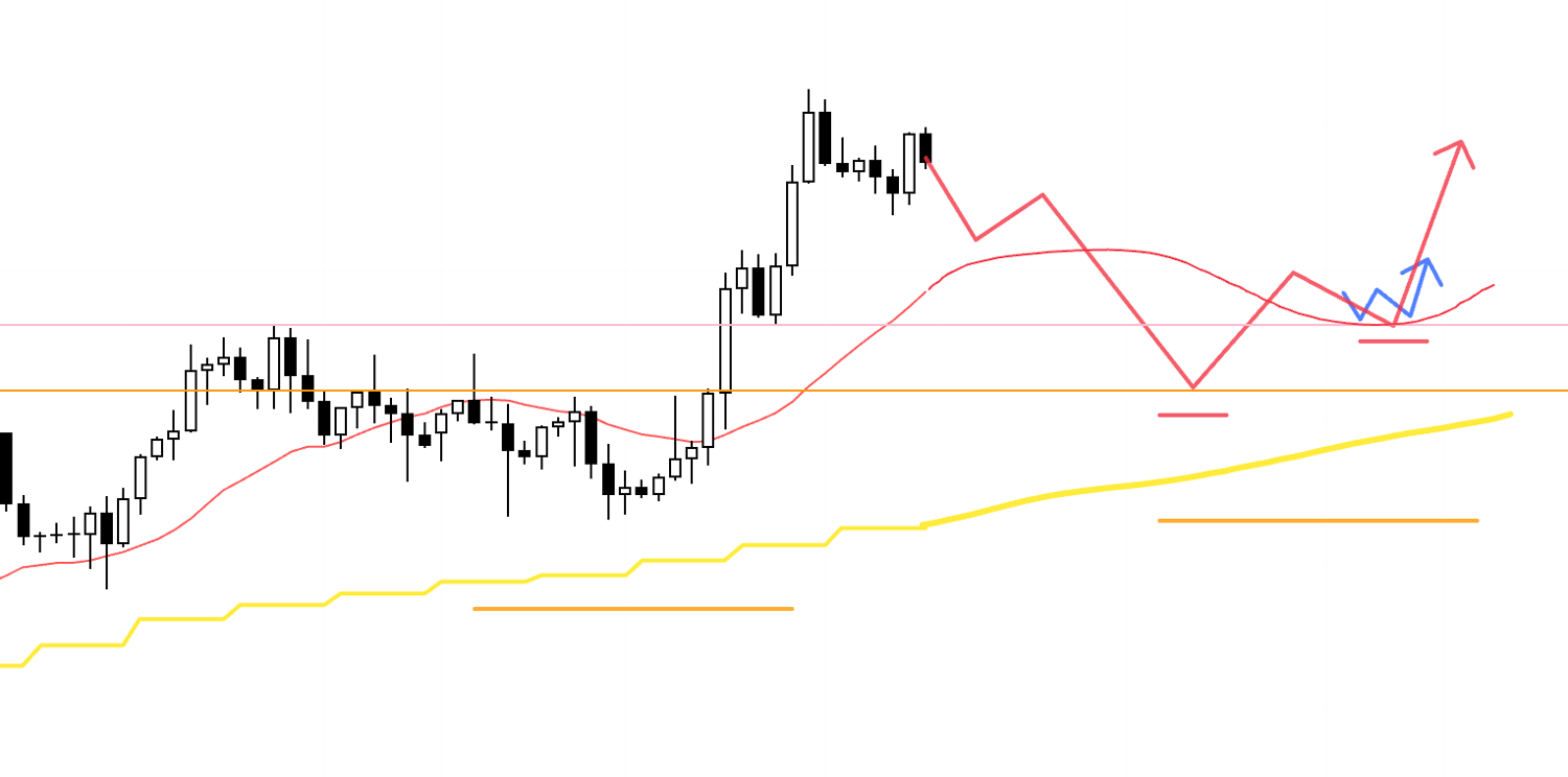 That said, there is a risk that any downside simply increases buying pressure, and the previous low is supported by the prior daily highs (orange line), so I want to judge based on whether an entry appears that offers a risk–reward profile that makes sense down to that level.